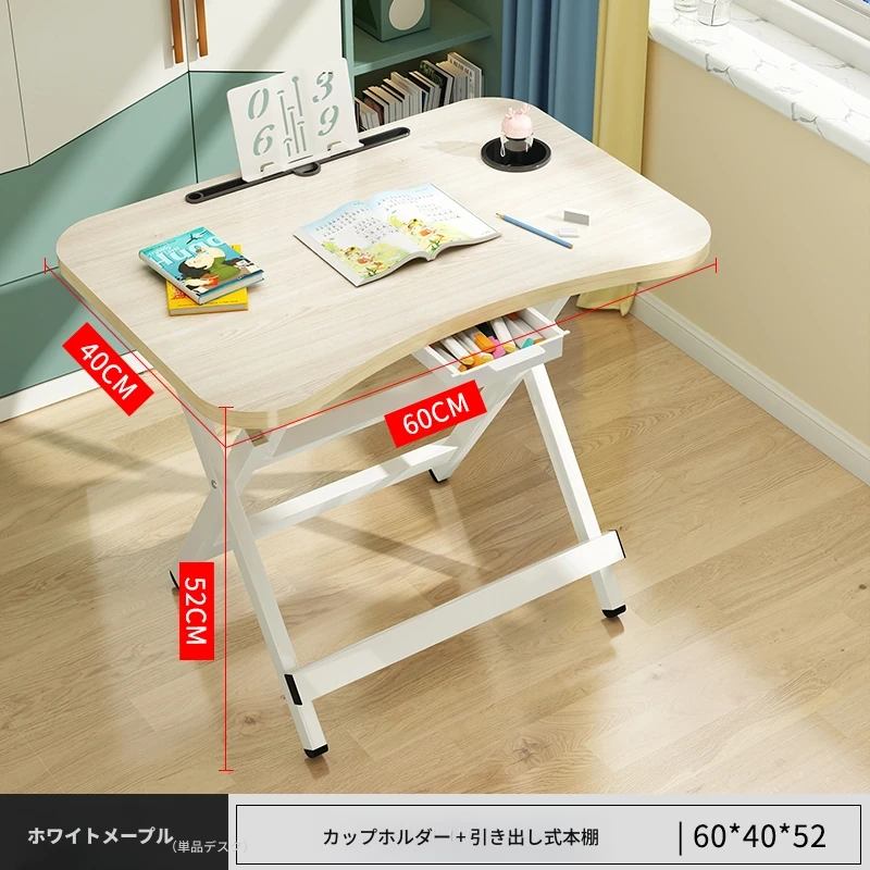 【テーブルと椅子のセット】ホワイトメープル60*40*52(スロットカップホルダー+引き出し本棚)スツール高さ30cm