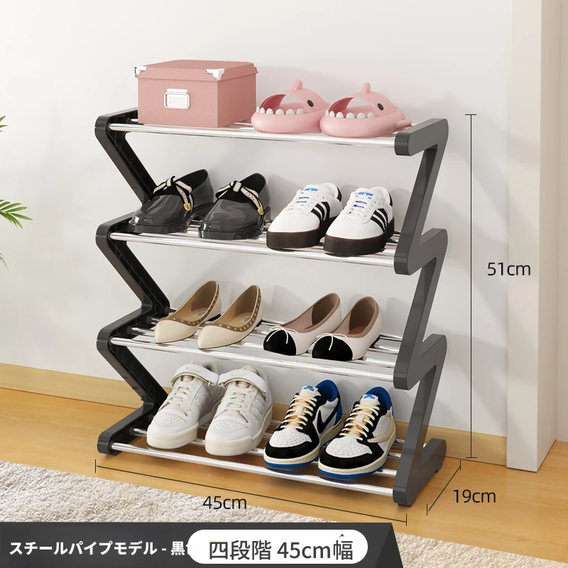 【スチールパイプ式】ブラック4段中サイズ-8足の靴が収納可能