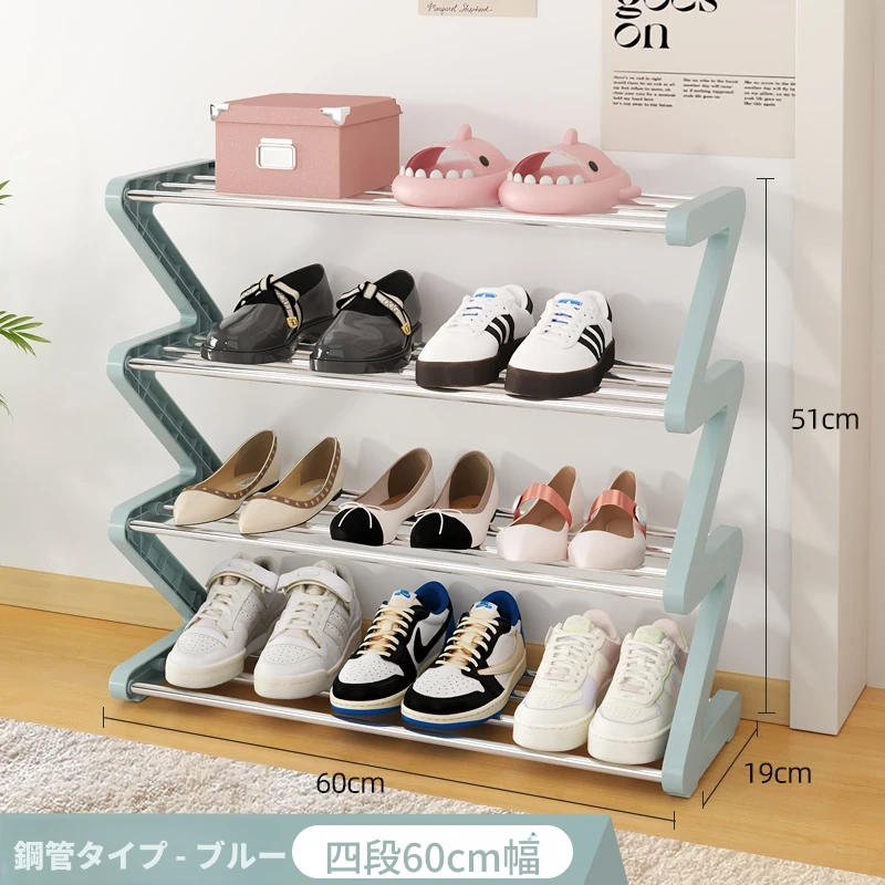 【スチールパイプ式】ブルー4段中サイズ-8足の靴が収納可能