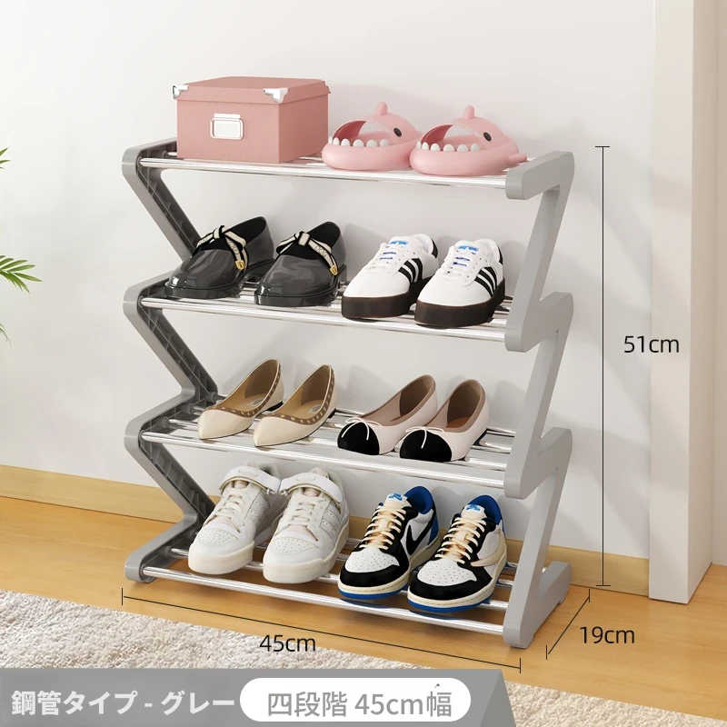 【スチールパイプ式】グレー4段中サイズ-8足の靴が収納可能