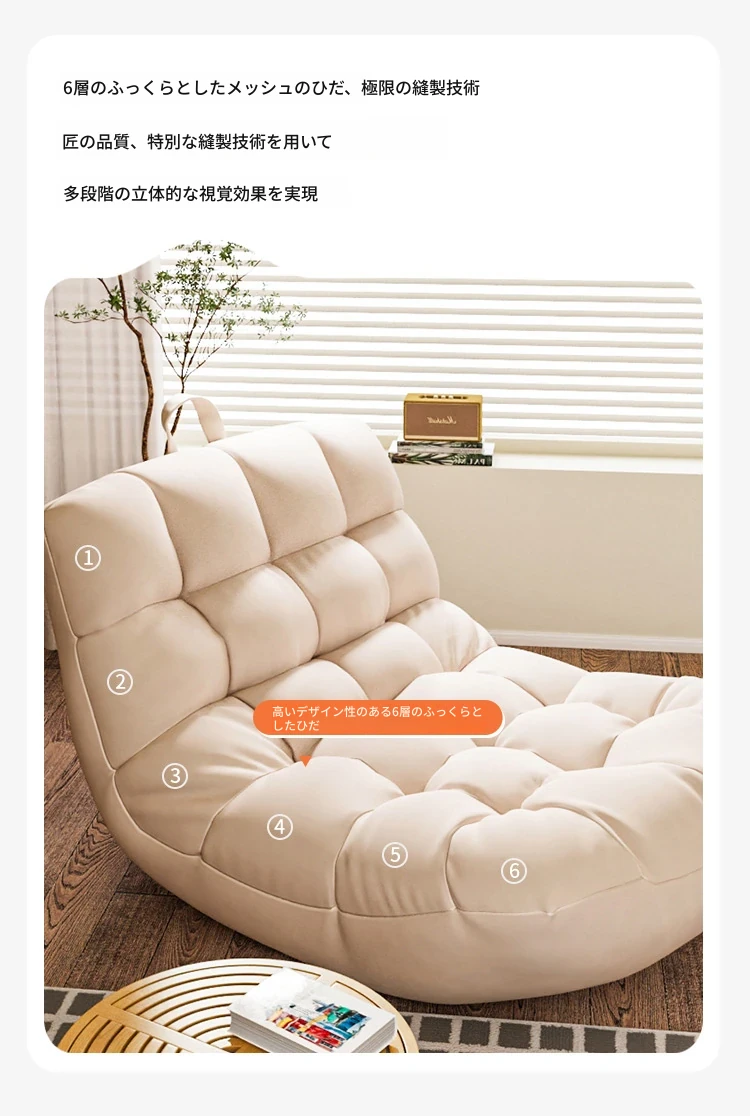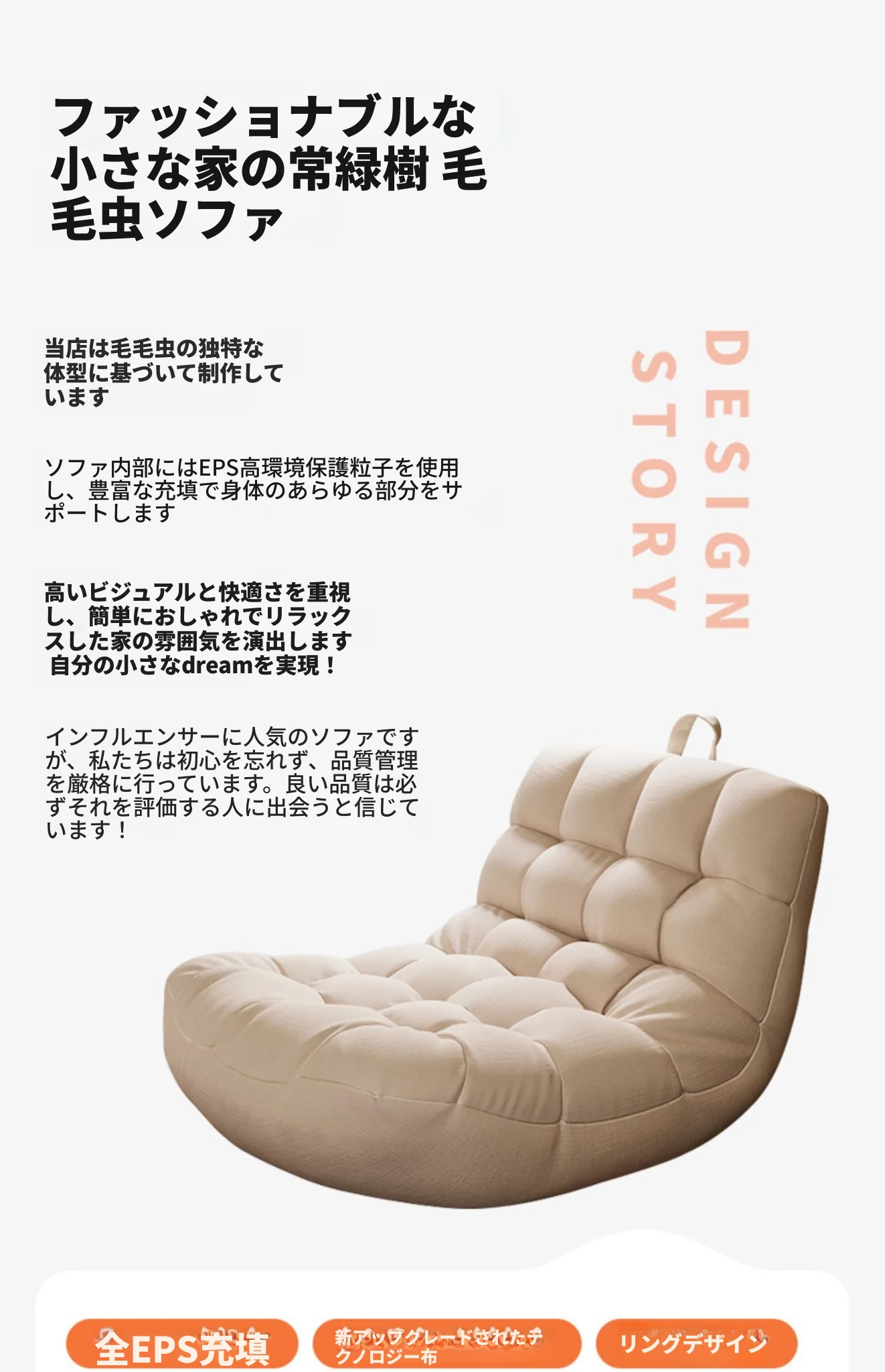 三夢リラックスソファ - 寝転んでリラックス、ふわふわな毛虫デザインの一人用ソファ!主寝室やバルコニー、畳の上でも大活躍!快適なひとときをお楽しみください。