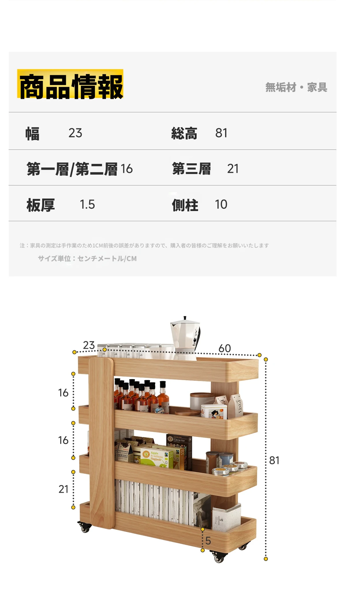 オークウッドカラー - ワゴン収納ラック【23*60*81CM】
