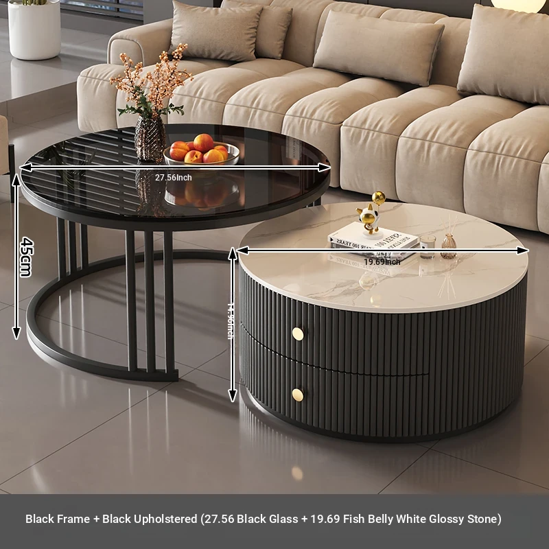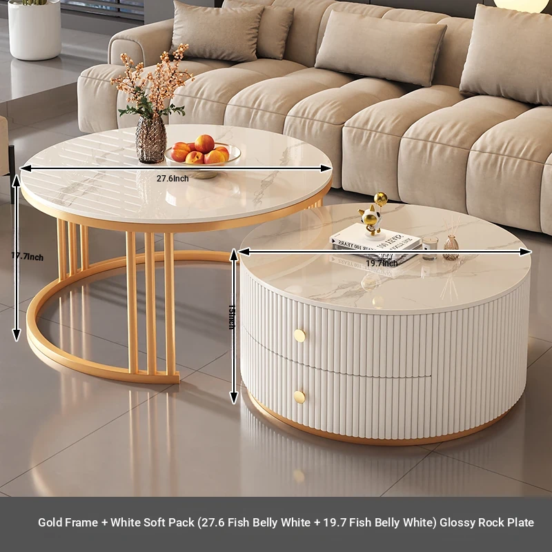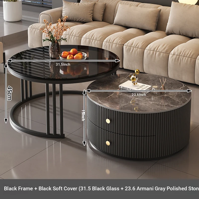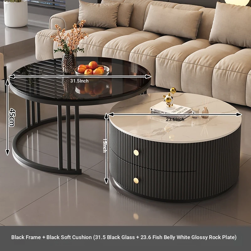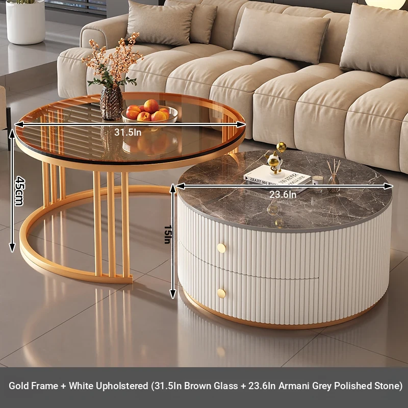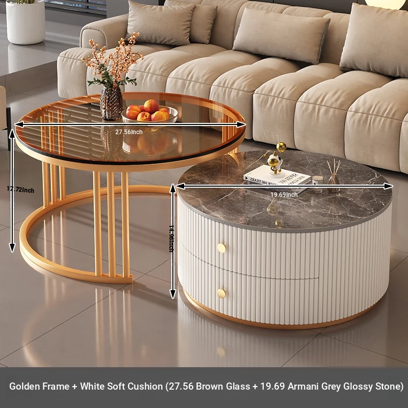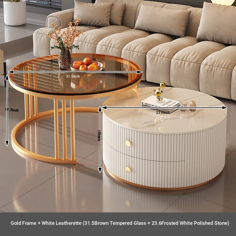 Elegant Round Glass Coffee Table Set for Small Apartments - 2024 New Arrival! Luxurious Minimalist Design for Stylish Living Rooms. Perfect for Home Decor and Modern Spaces.