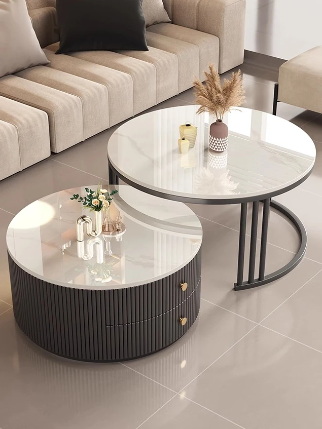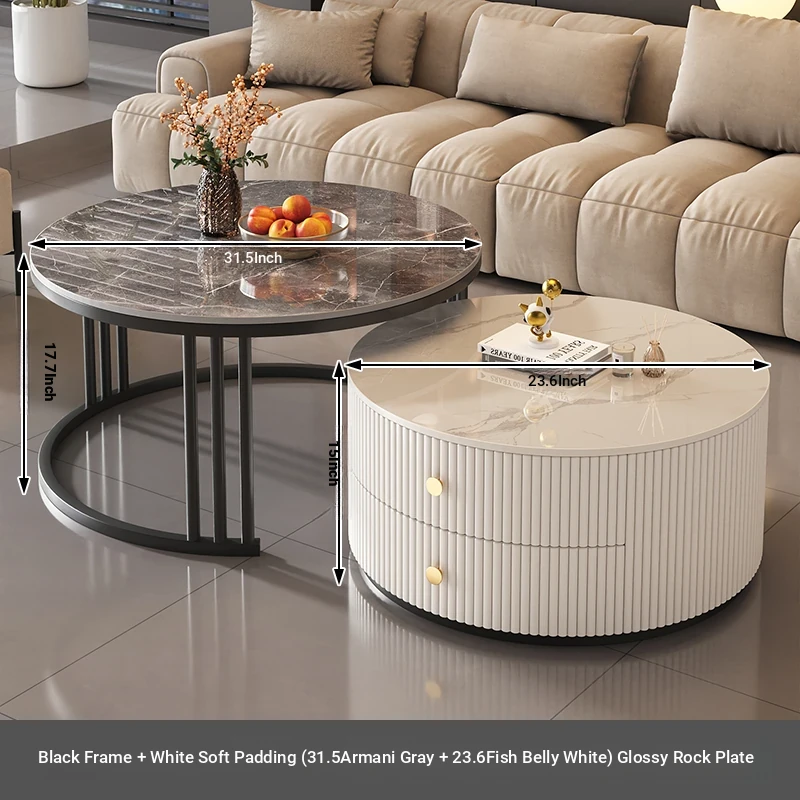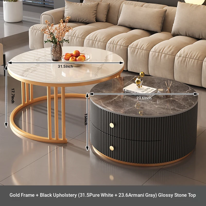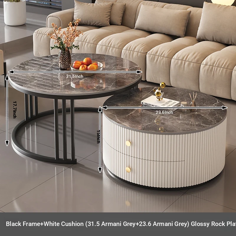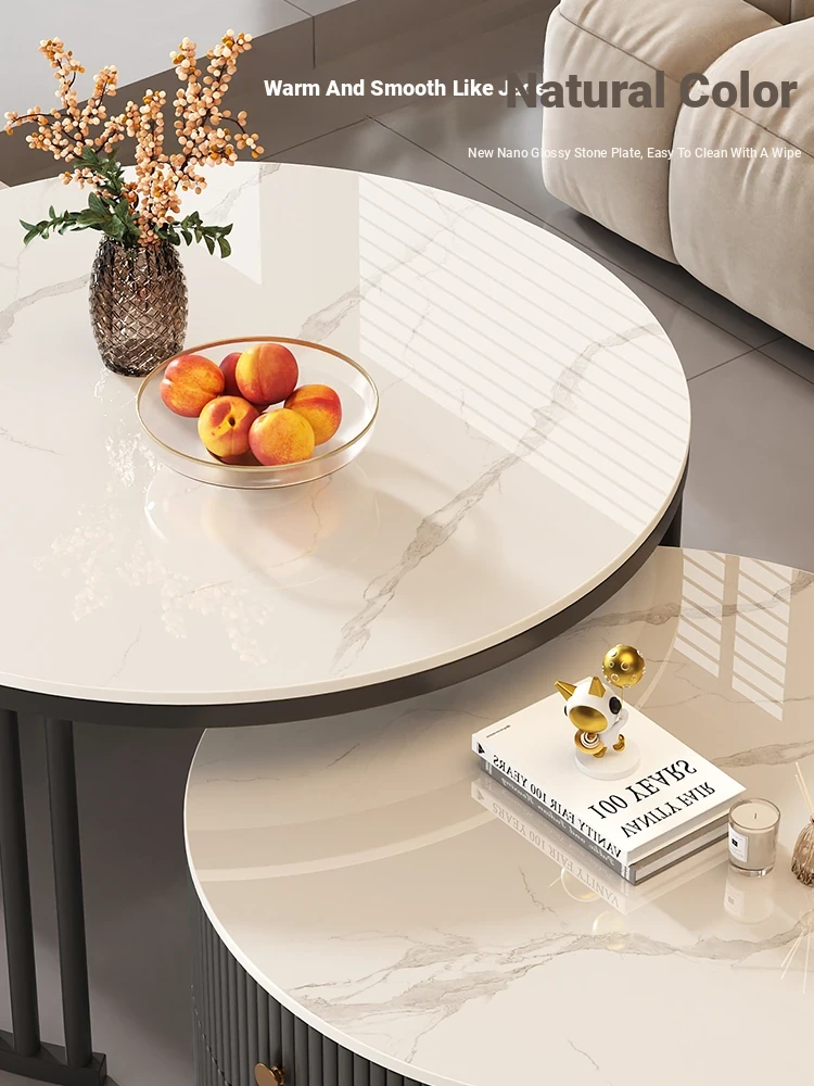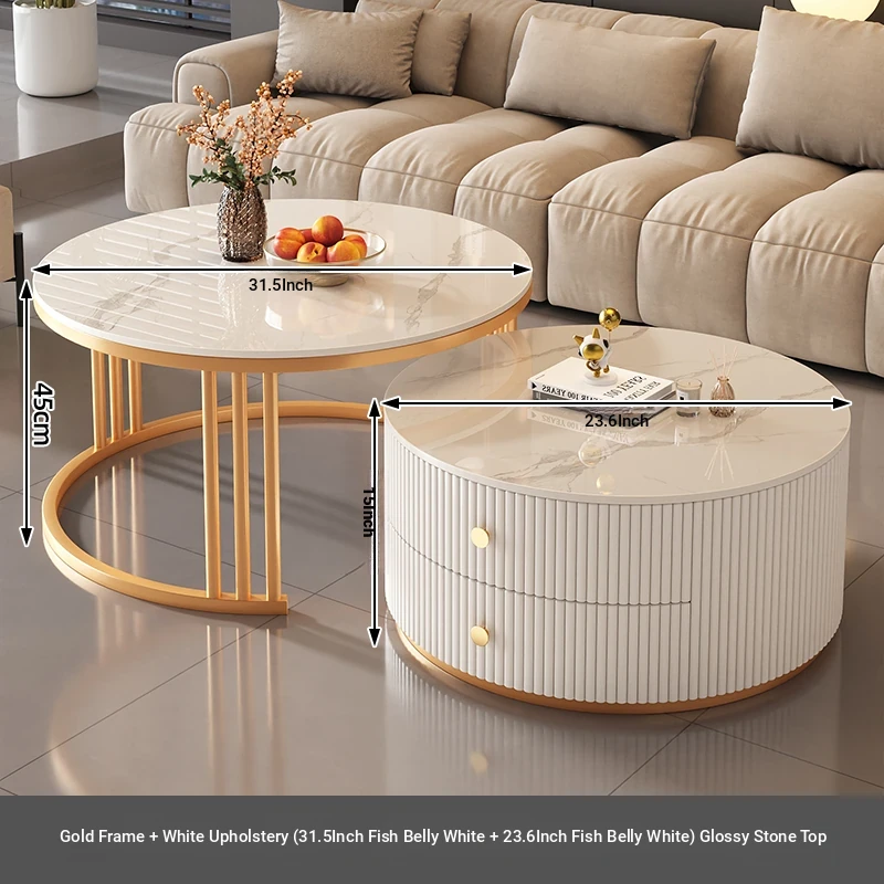 Elegant Round Glass Coffee Table Set for Small Apartments - 2024 New Arrival! Luxurious Minimalist Design for Stylish Living Rooms. Perfect for Home Decor and Modern Spaces.