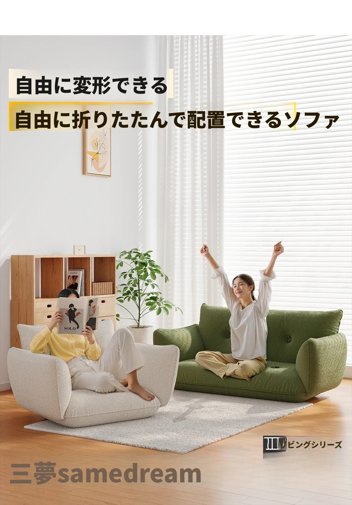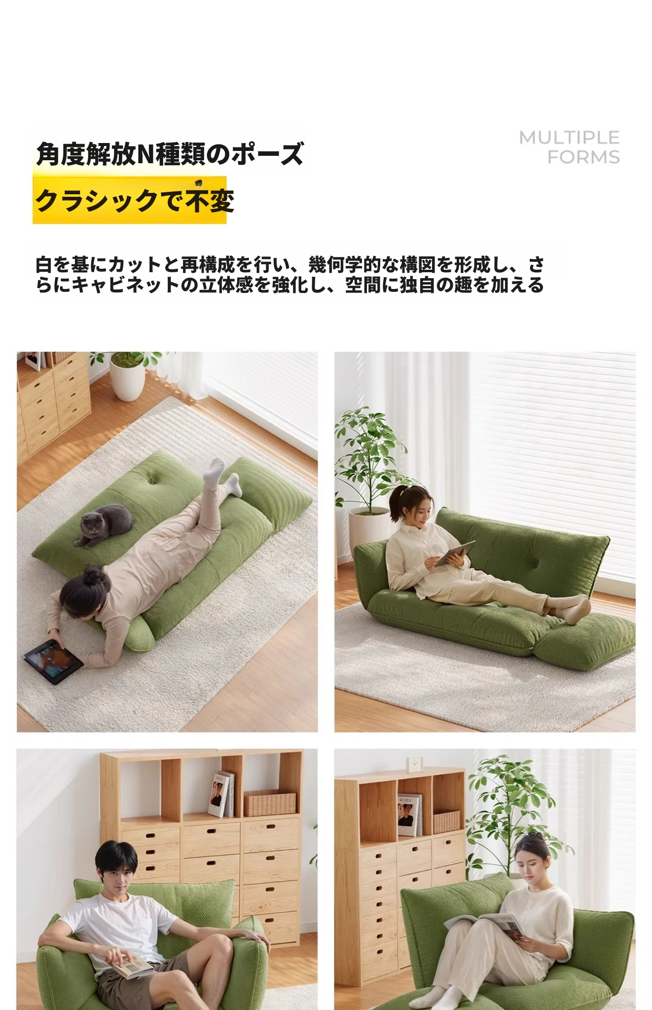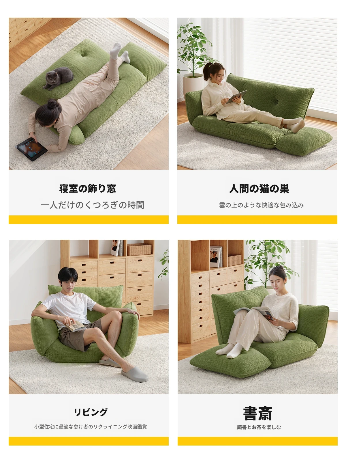 楽々リクライニングソファー - 寝転びながらくつろげる折りたたみ式タタミソファ!自由自在に調整可能、1人用・2人用両方対応。寝室やリビングにぴったりのリラックス空間を実現します!