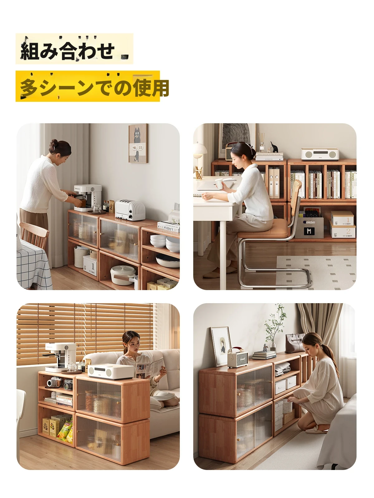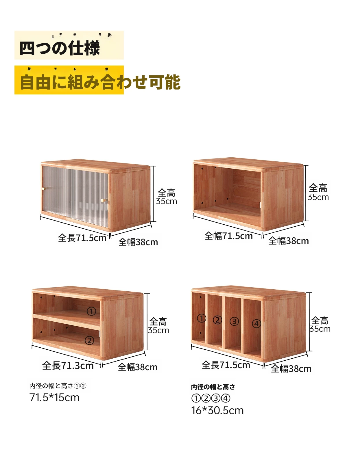 D型4仕切りキャビネット丨三夢コンビネーションキャビネット(チェリーカラー)