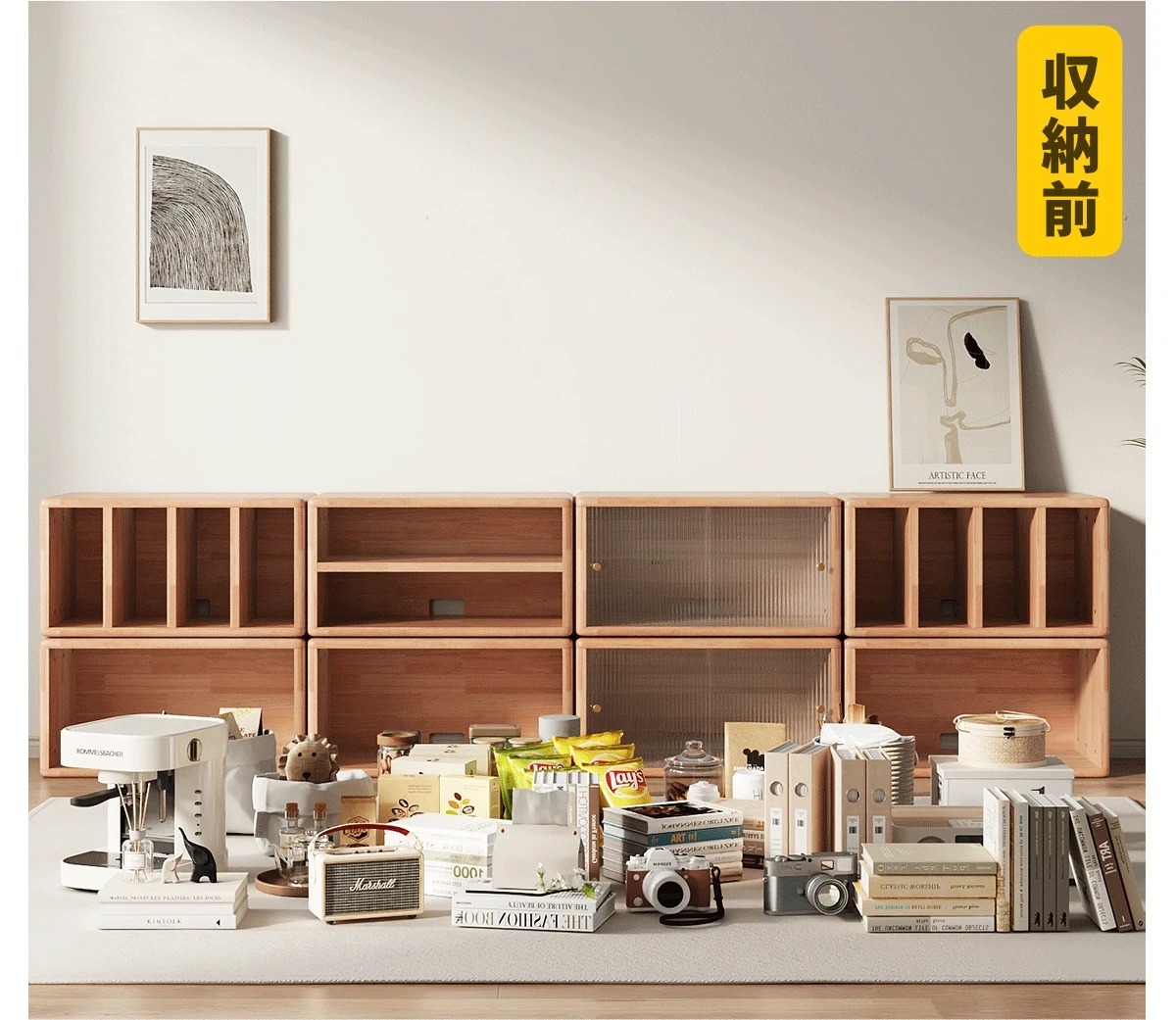 B型オープンキャビネット丨三夢コンビネーションキャビネット(チェリーカラー)