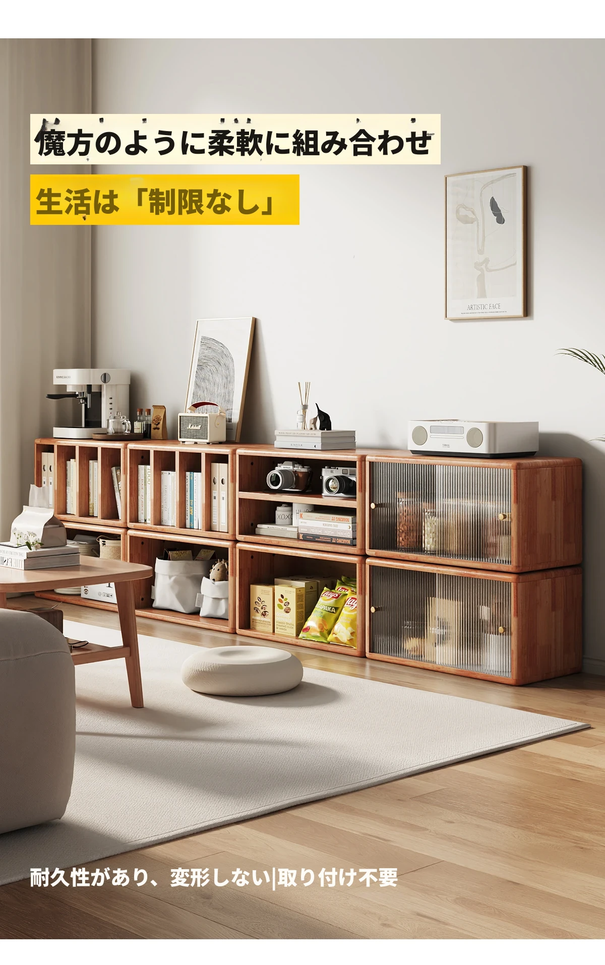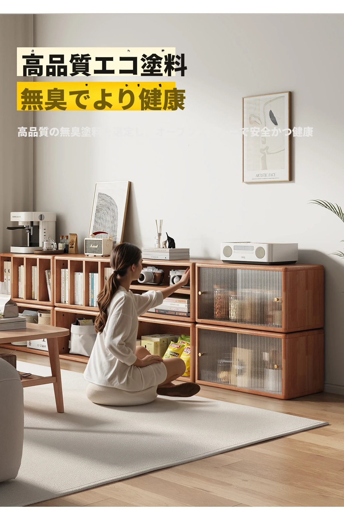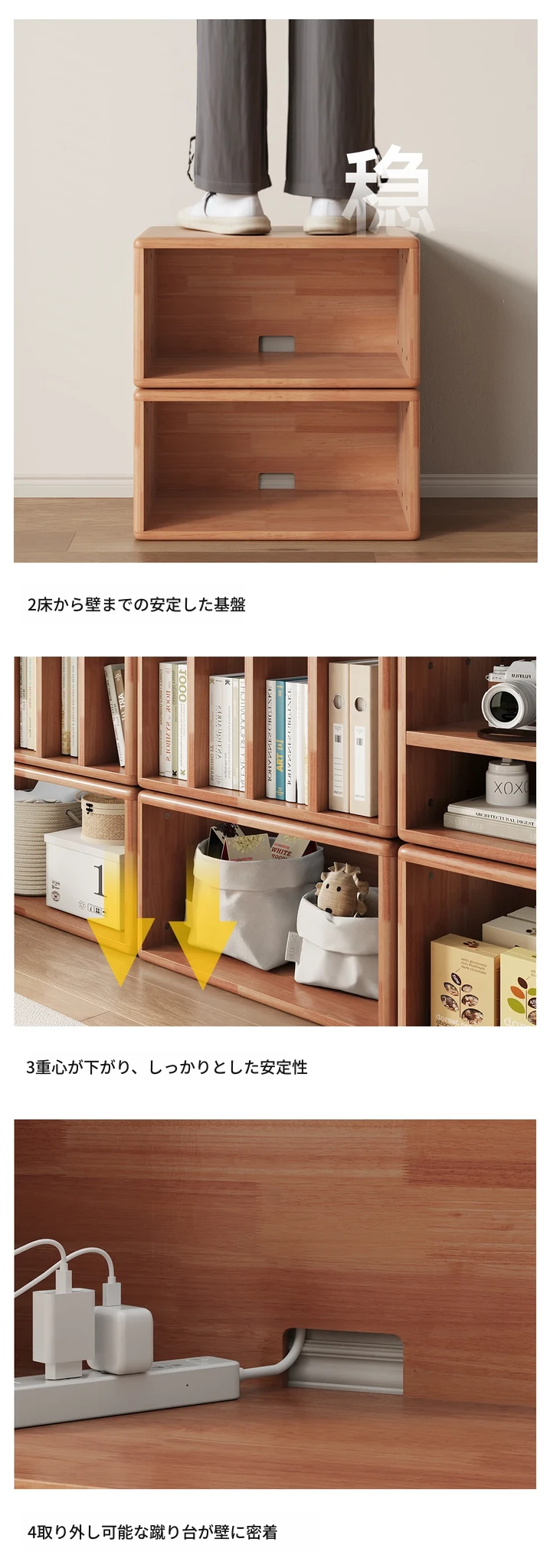 無垢材のフロア書棚 | シンプルでスタイリッシュな収納ラック | 本棚、テレビ台、サイドテーブルとしても使える多機能デザイン | お部屋をスッキリおしゃれに演出します!