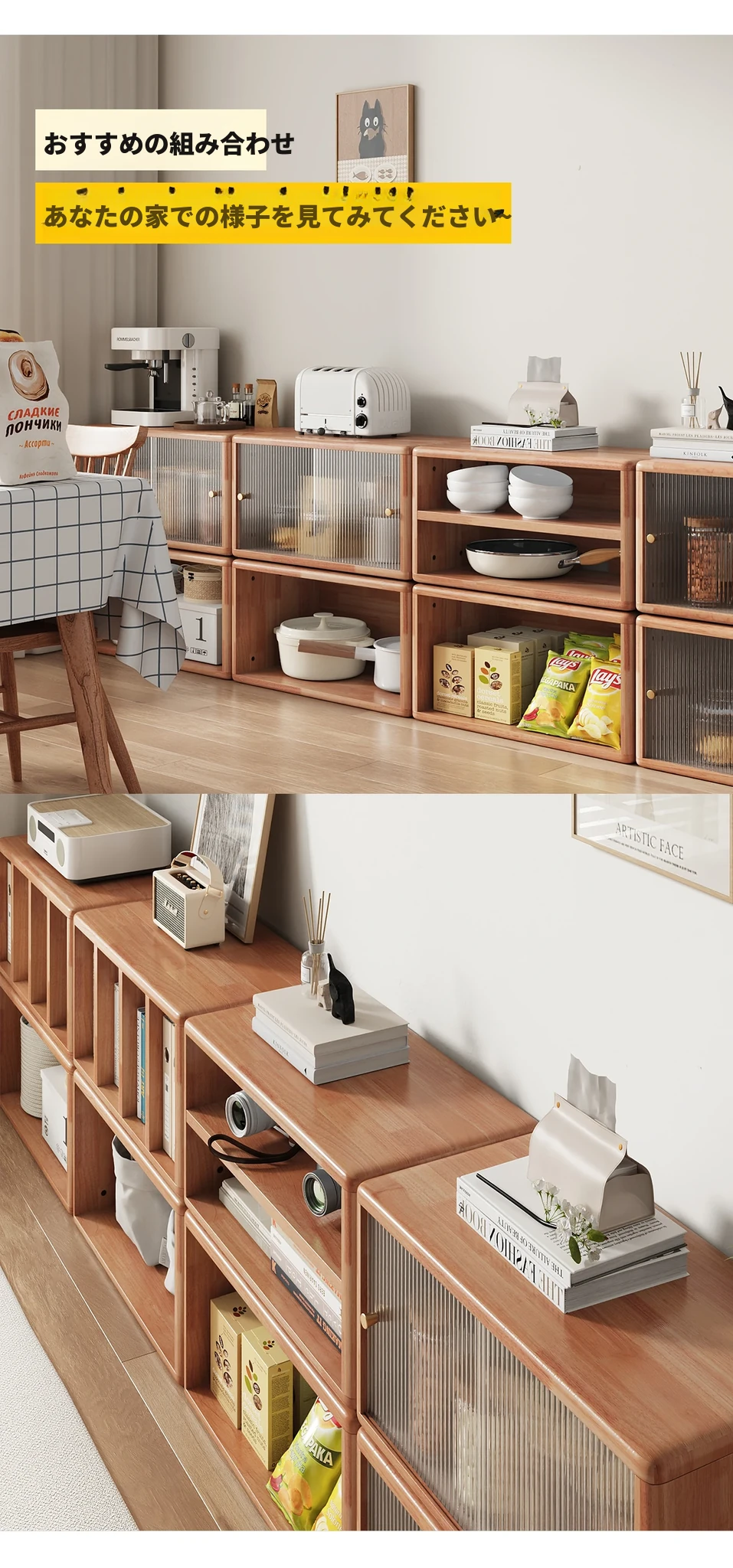 A型ガラス扉丨三夢コンビネーションキャビネット(チェリーカラー)