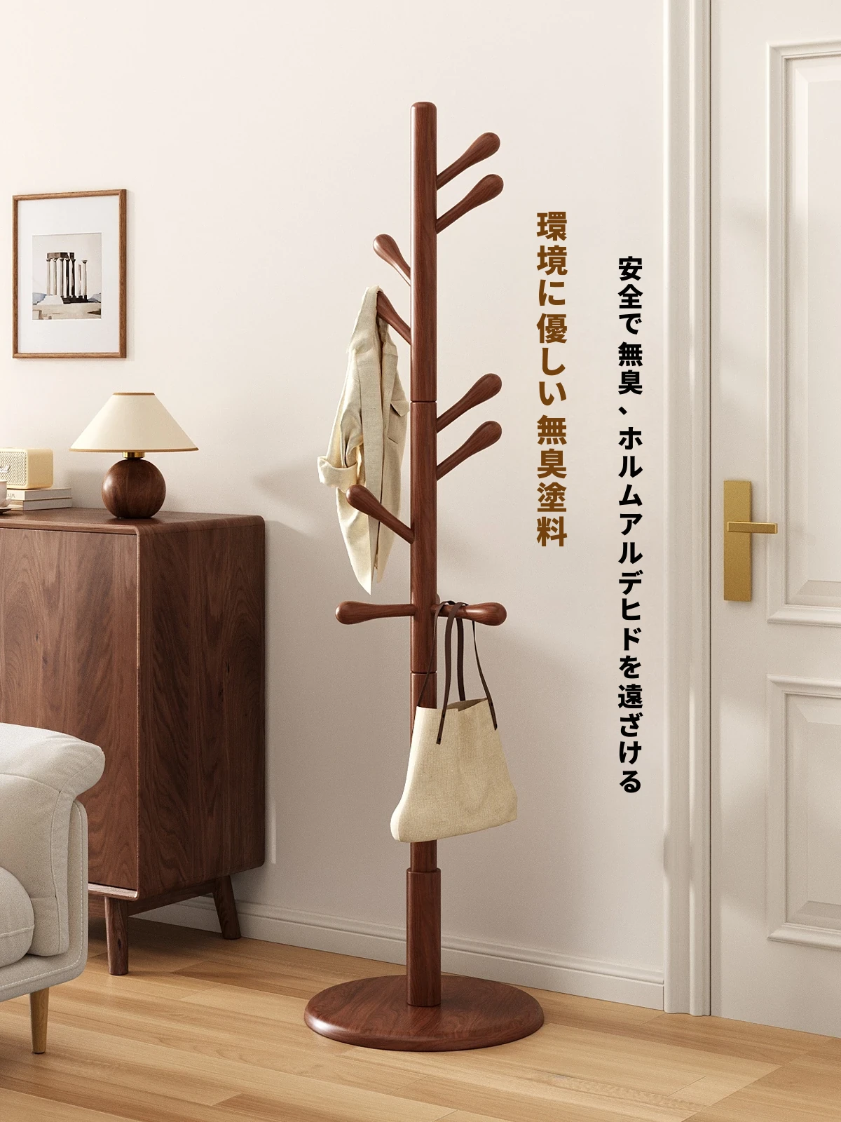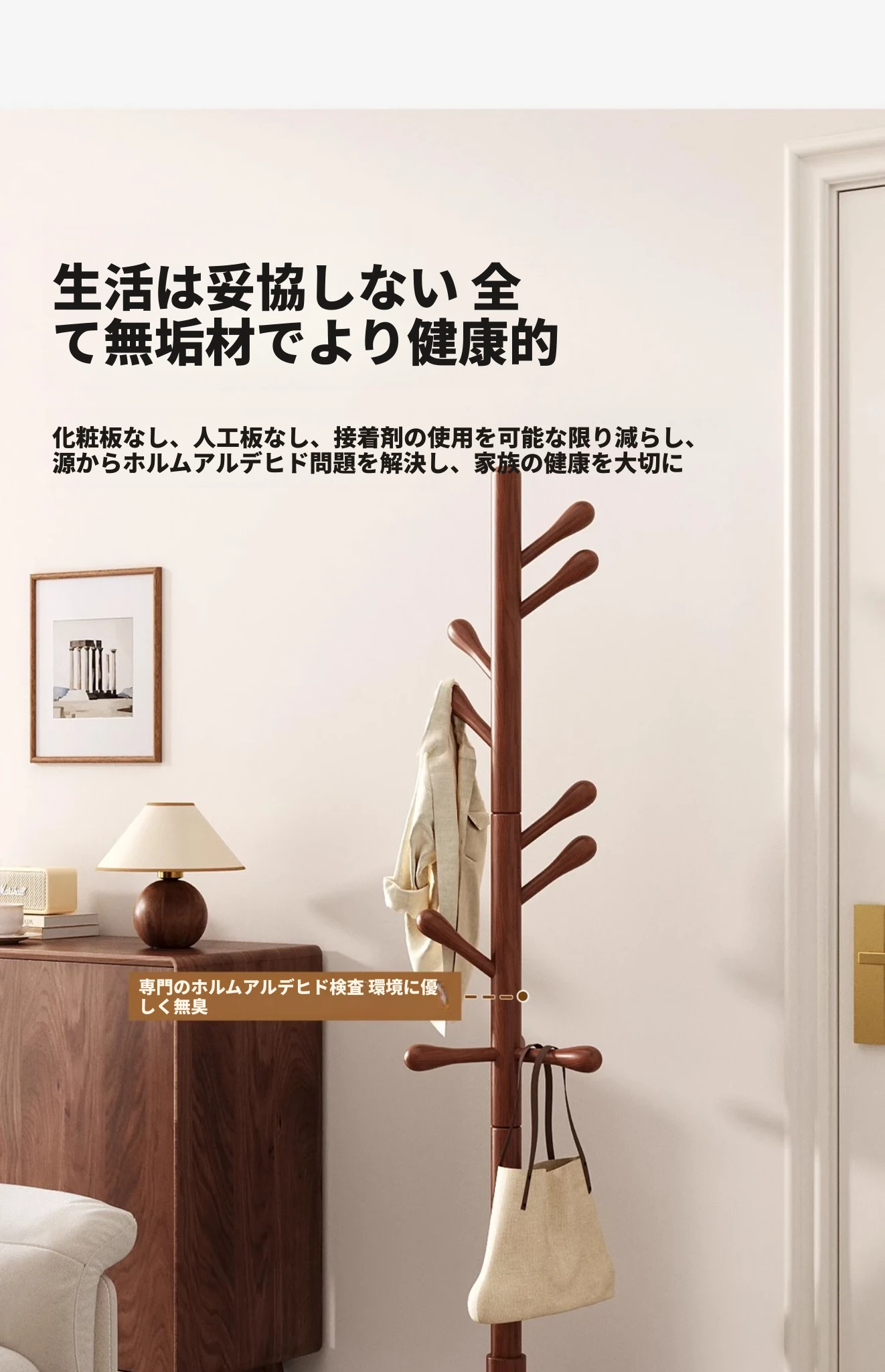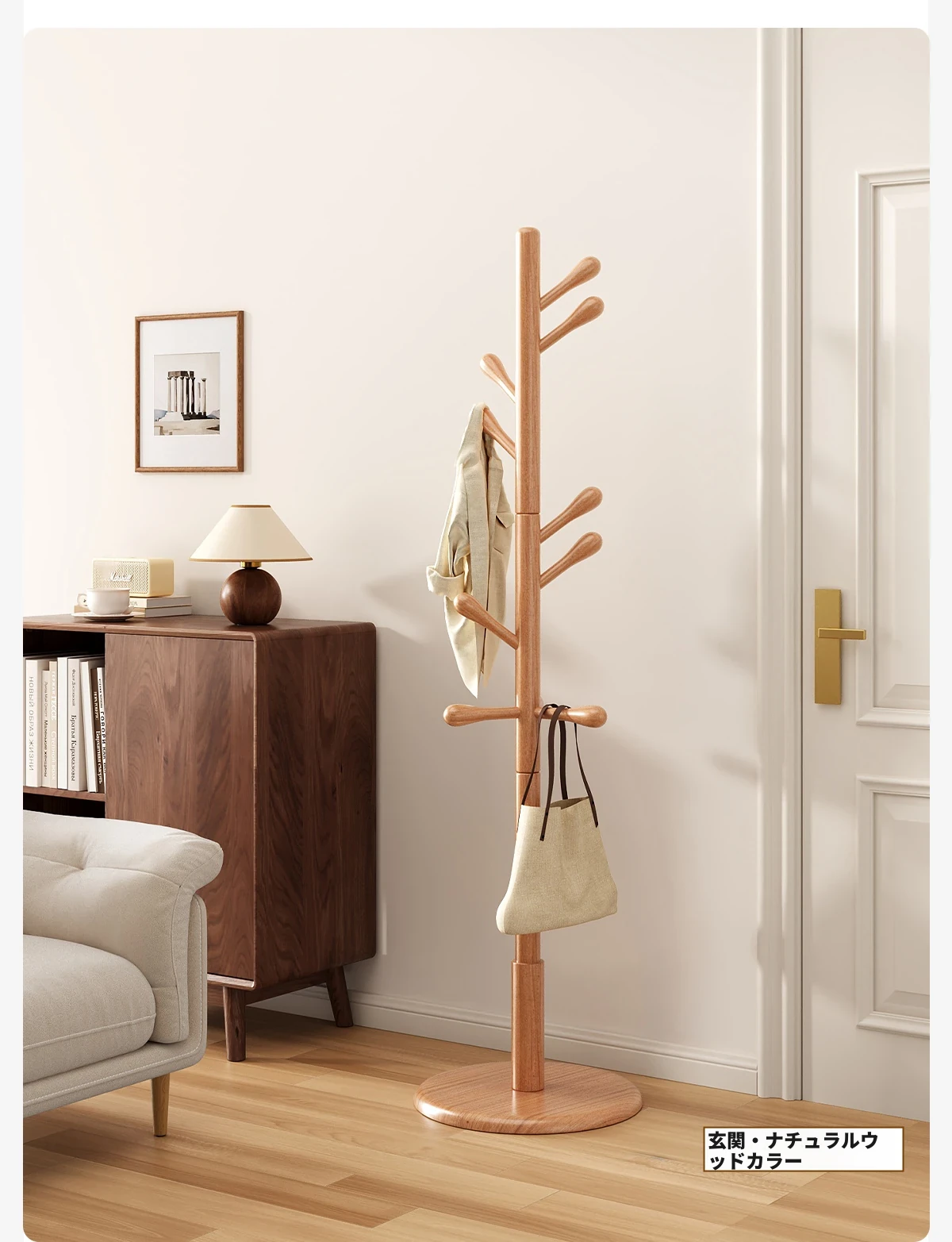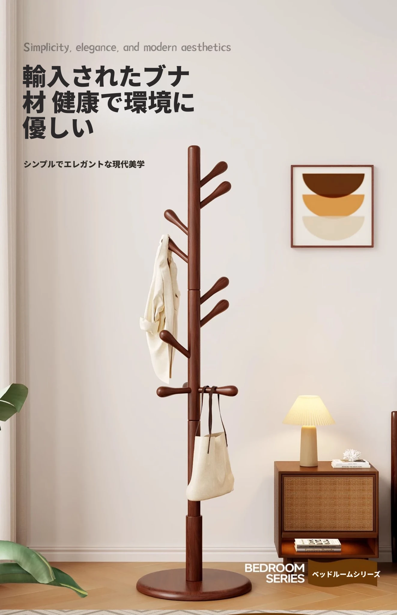 天然木製の衣類ハンガー|シンプルでスタイリッシュな立式コートラック|ベイジュウ材の高品質|寝室やリビングにぴったり|衣服やバッグをスマートに収納!