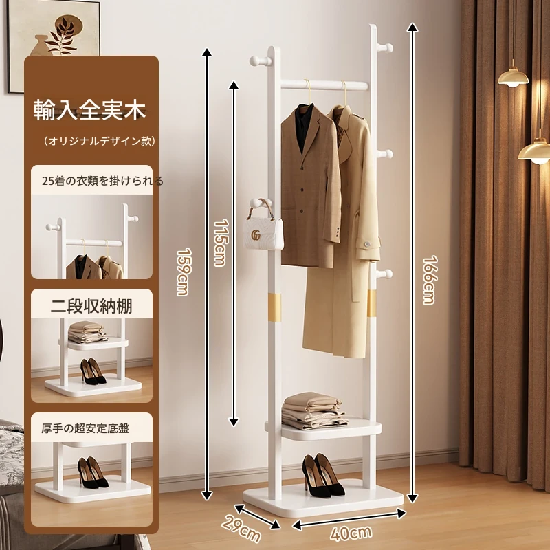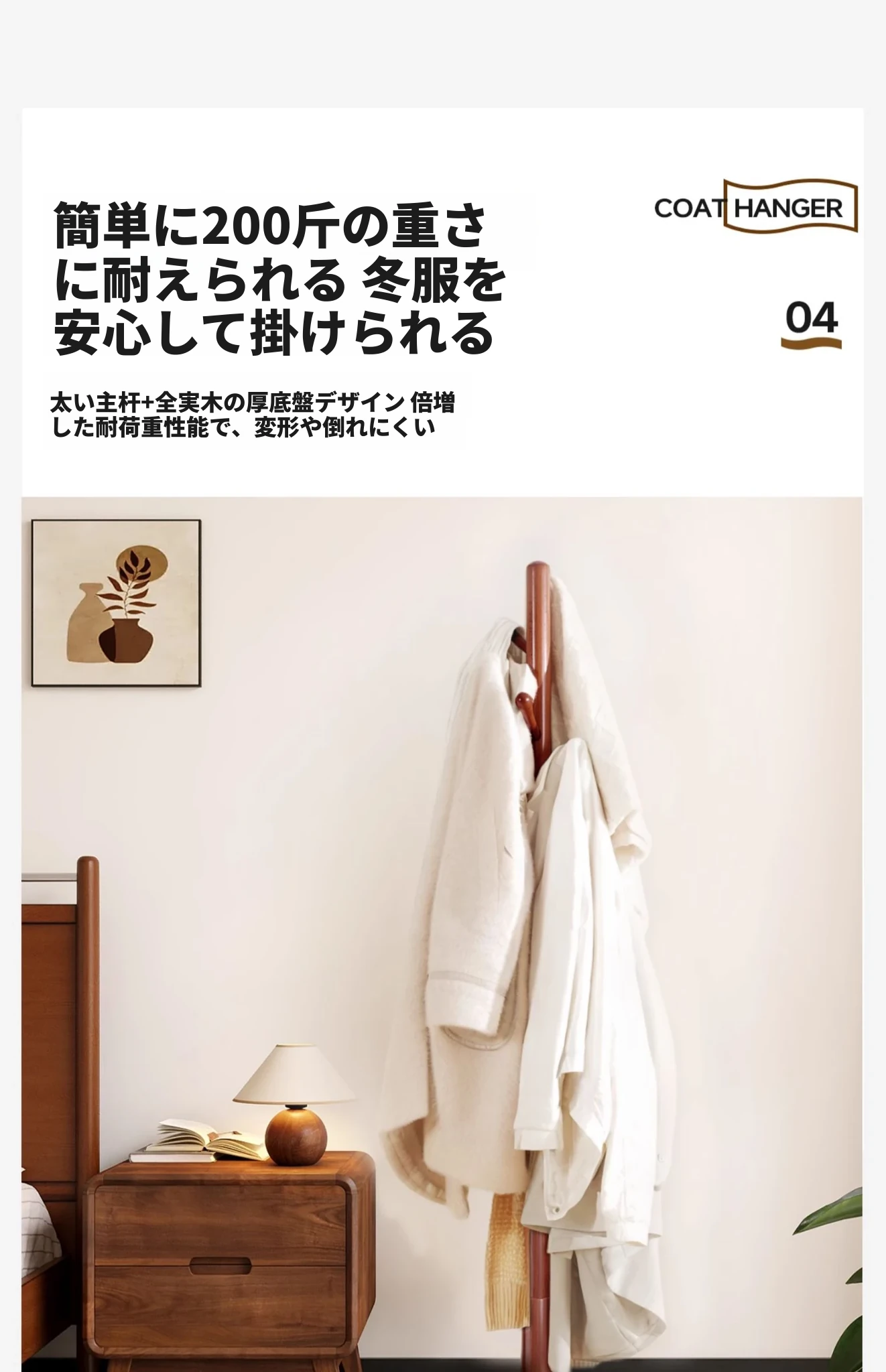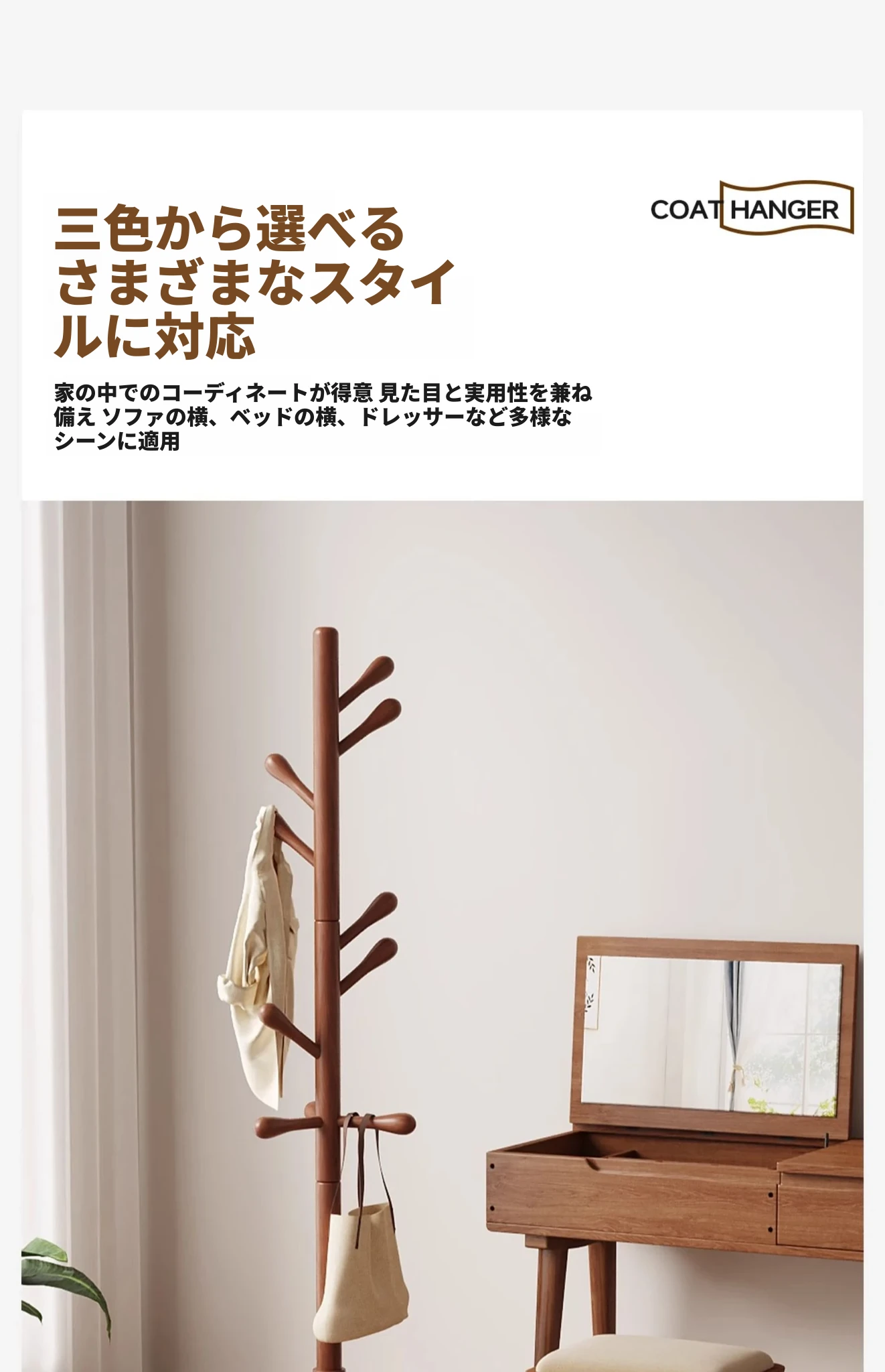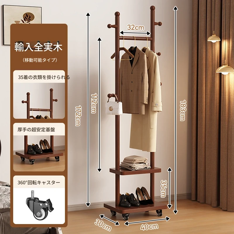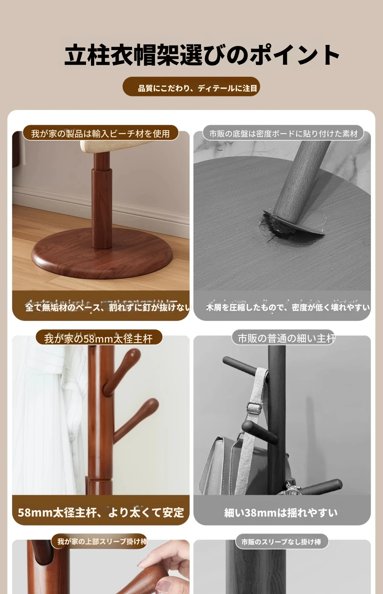 天然木製の衣類ハンガー|シンプルでスタイリッシュな立式コートラック|ベイジュウ材の高品質|寝室やリビングにぴったり|衣服やバッグをスマートに収納!