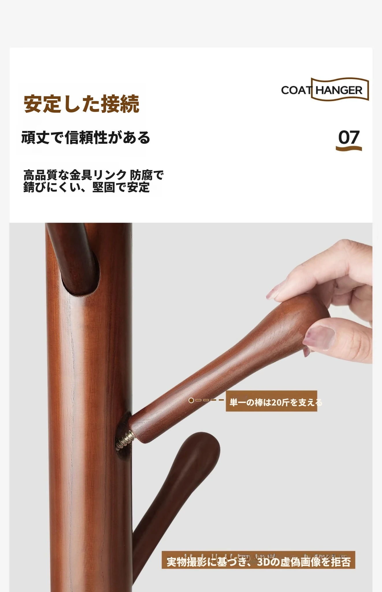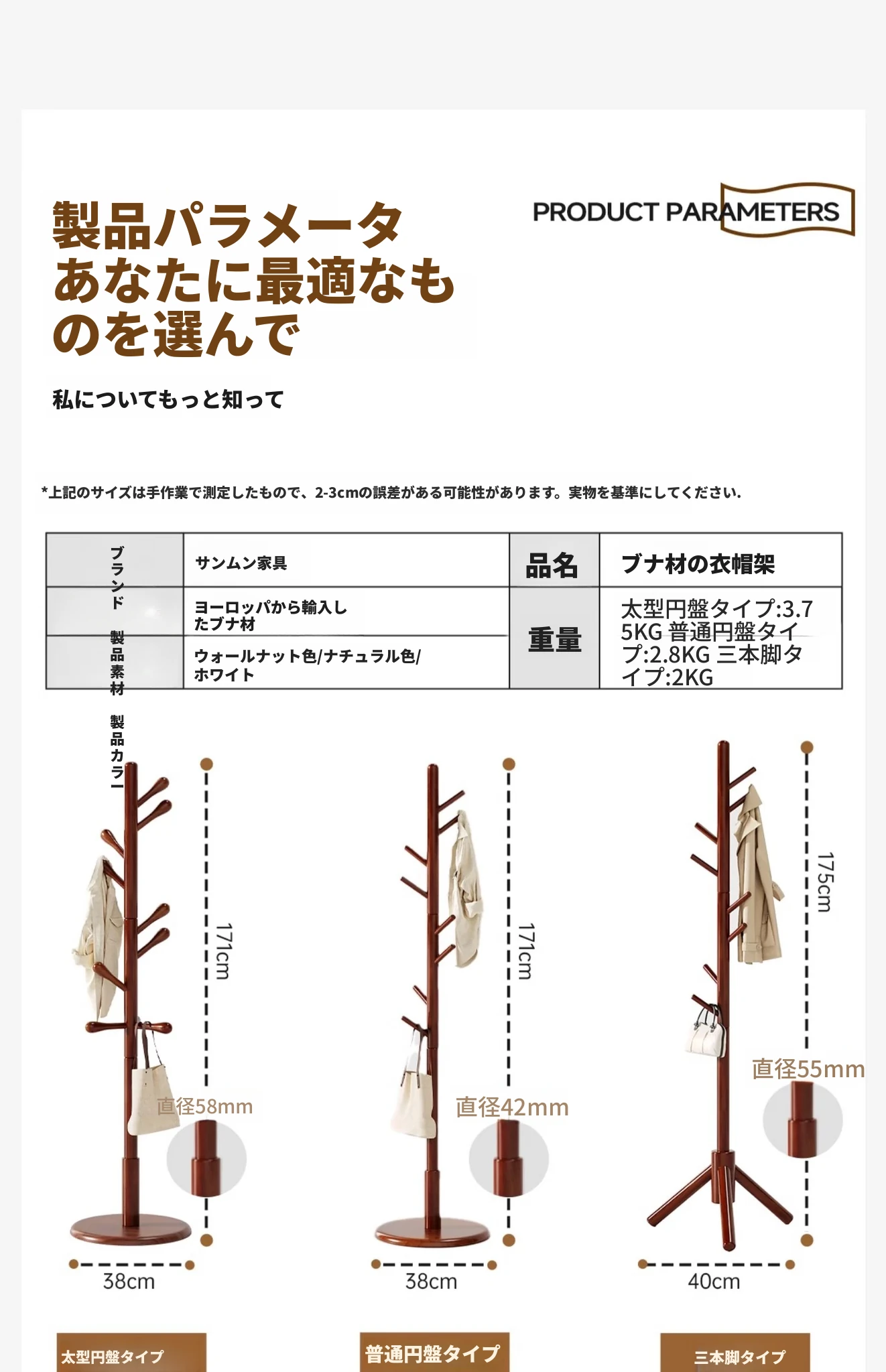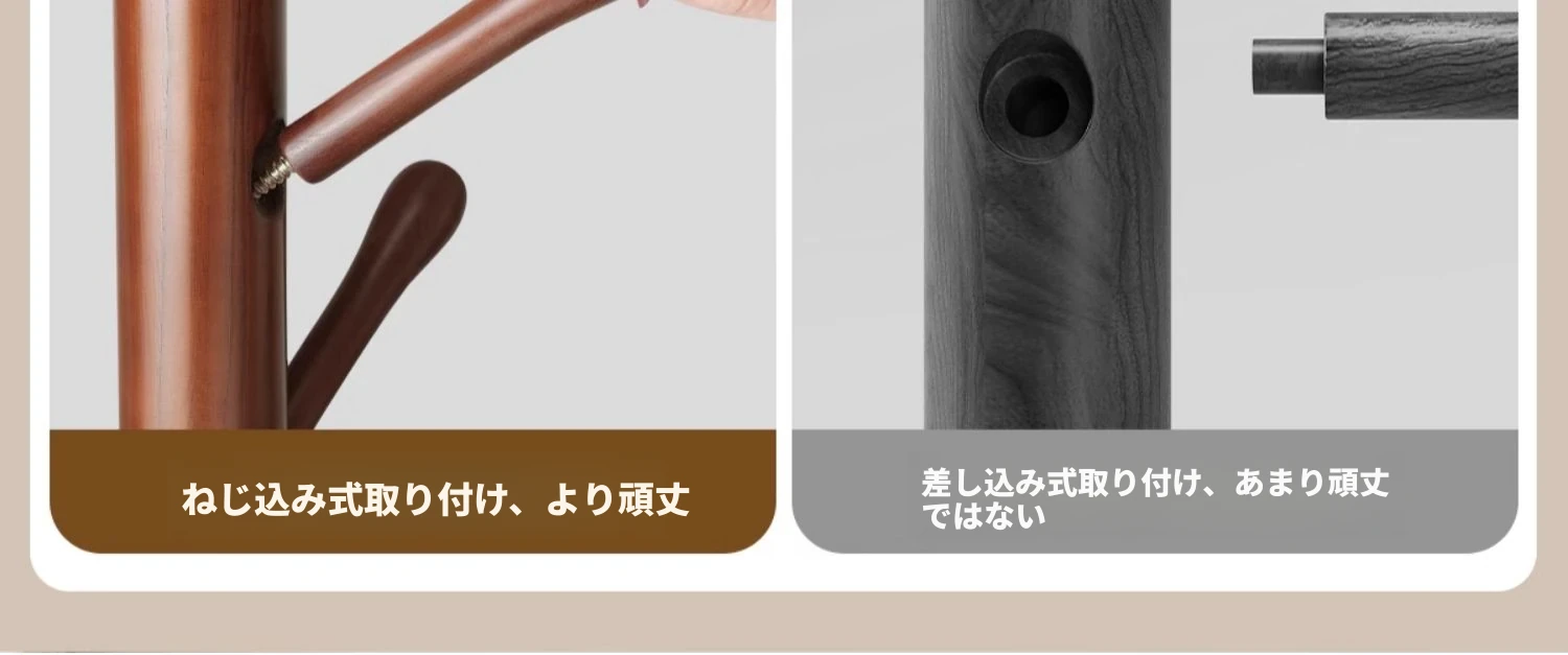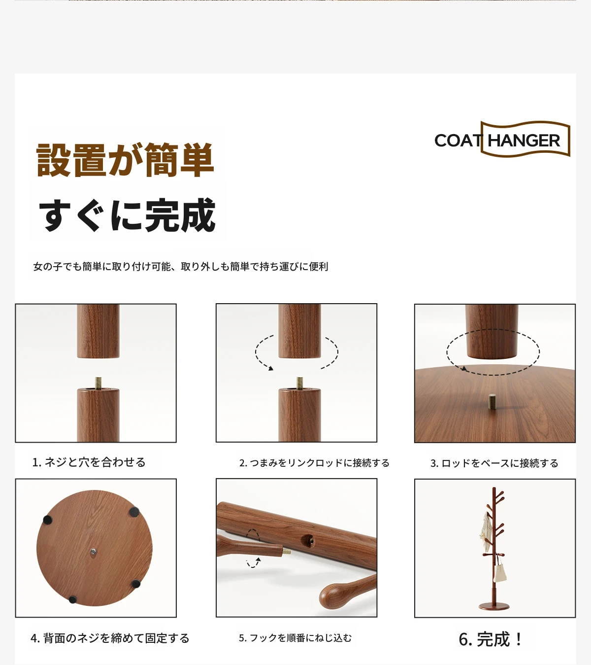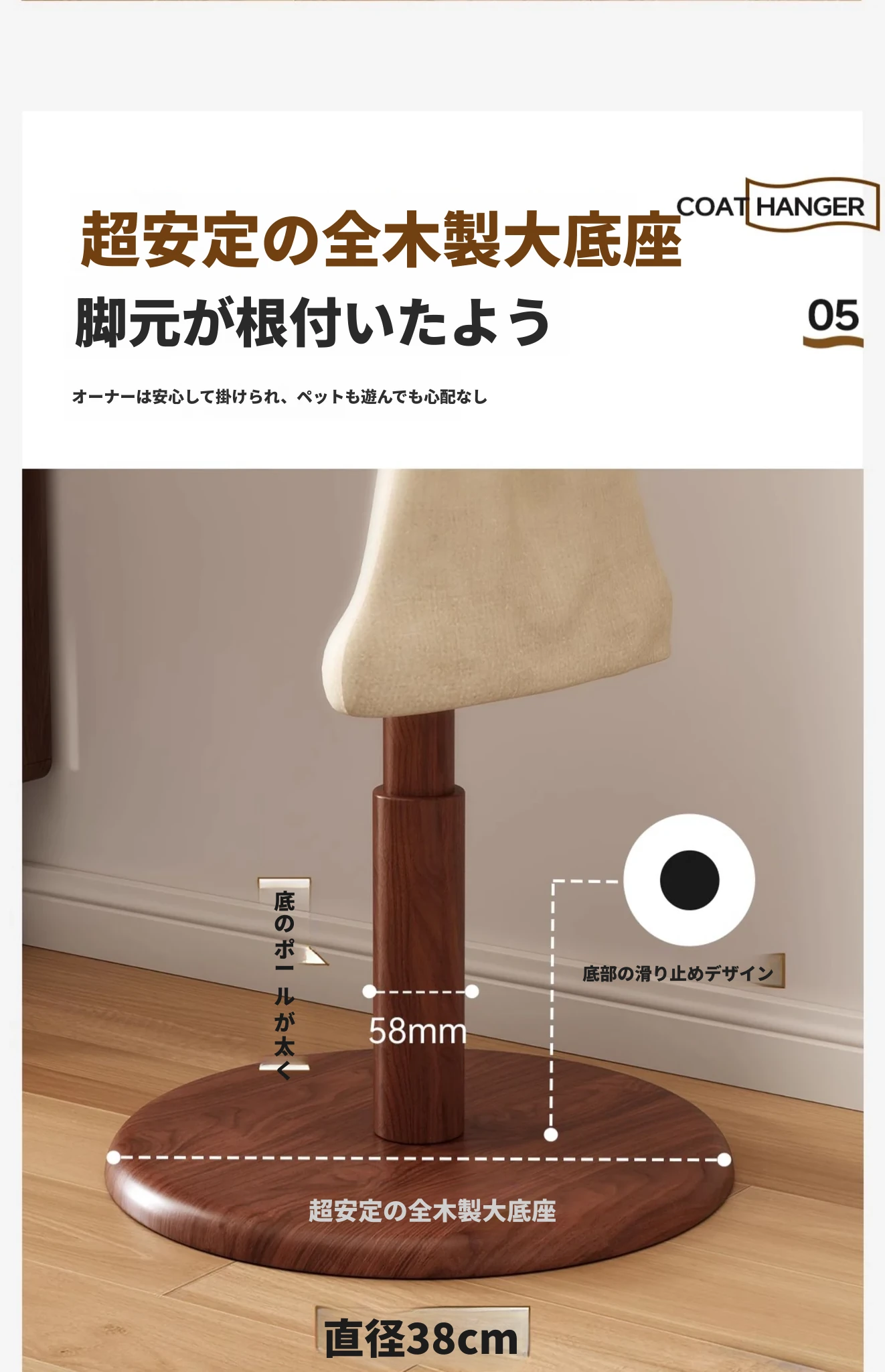 天然木製の衣類ハンガー|シンプルでスタイリッシュな立式コートラック|ベイジュウ材の高品質|寝室やリビングにぴったり|衣服やバッグをスマートに収納!