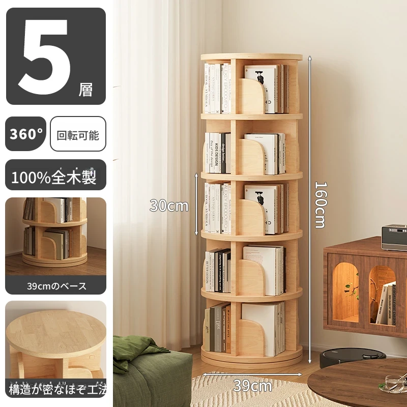 全木製回転書棚 - 家庭用リビングに最適な壁掛け収納、シンプルで便利な学生用キャビネット、子供用書棚としても活躍!