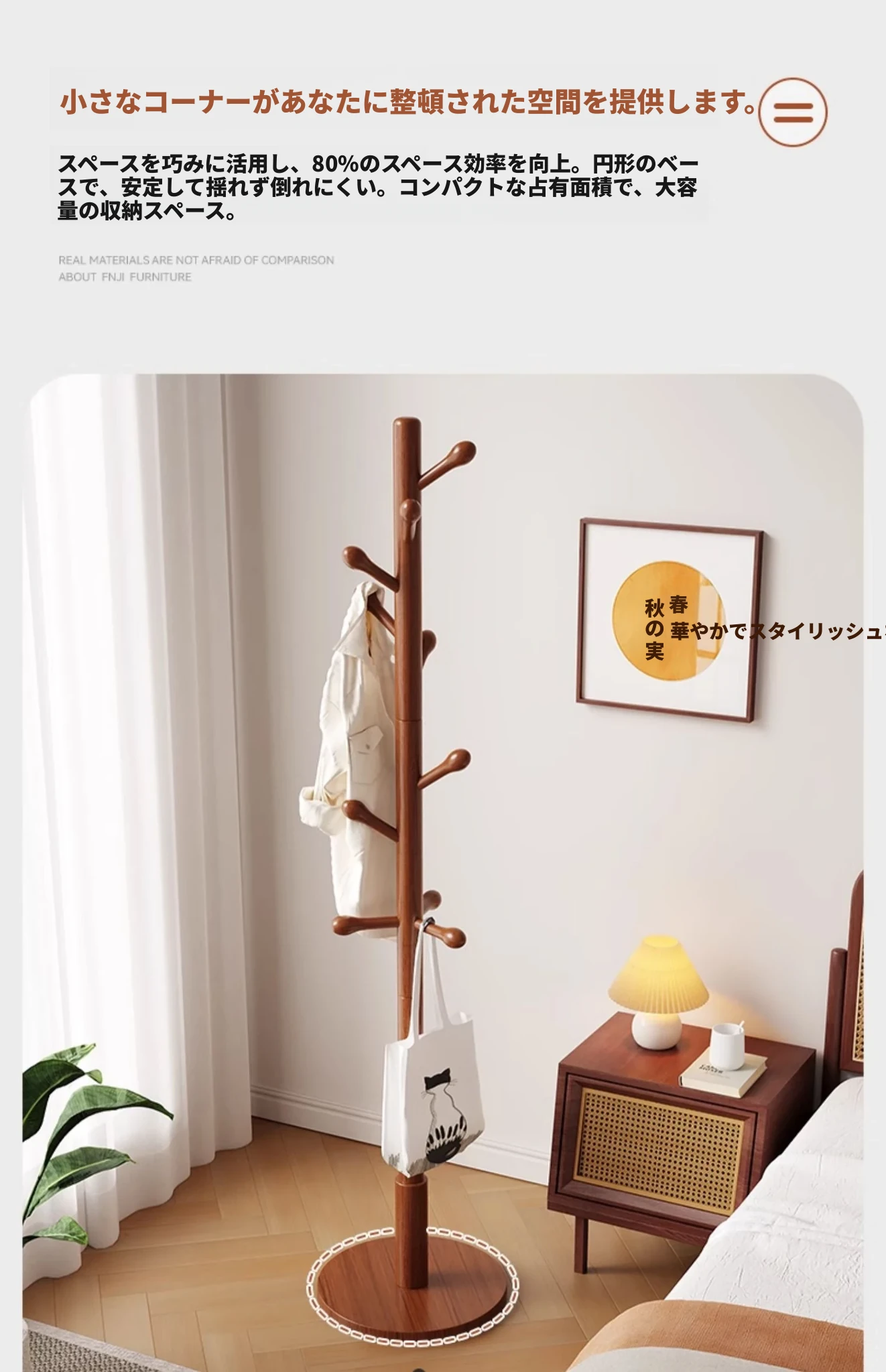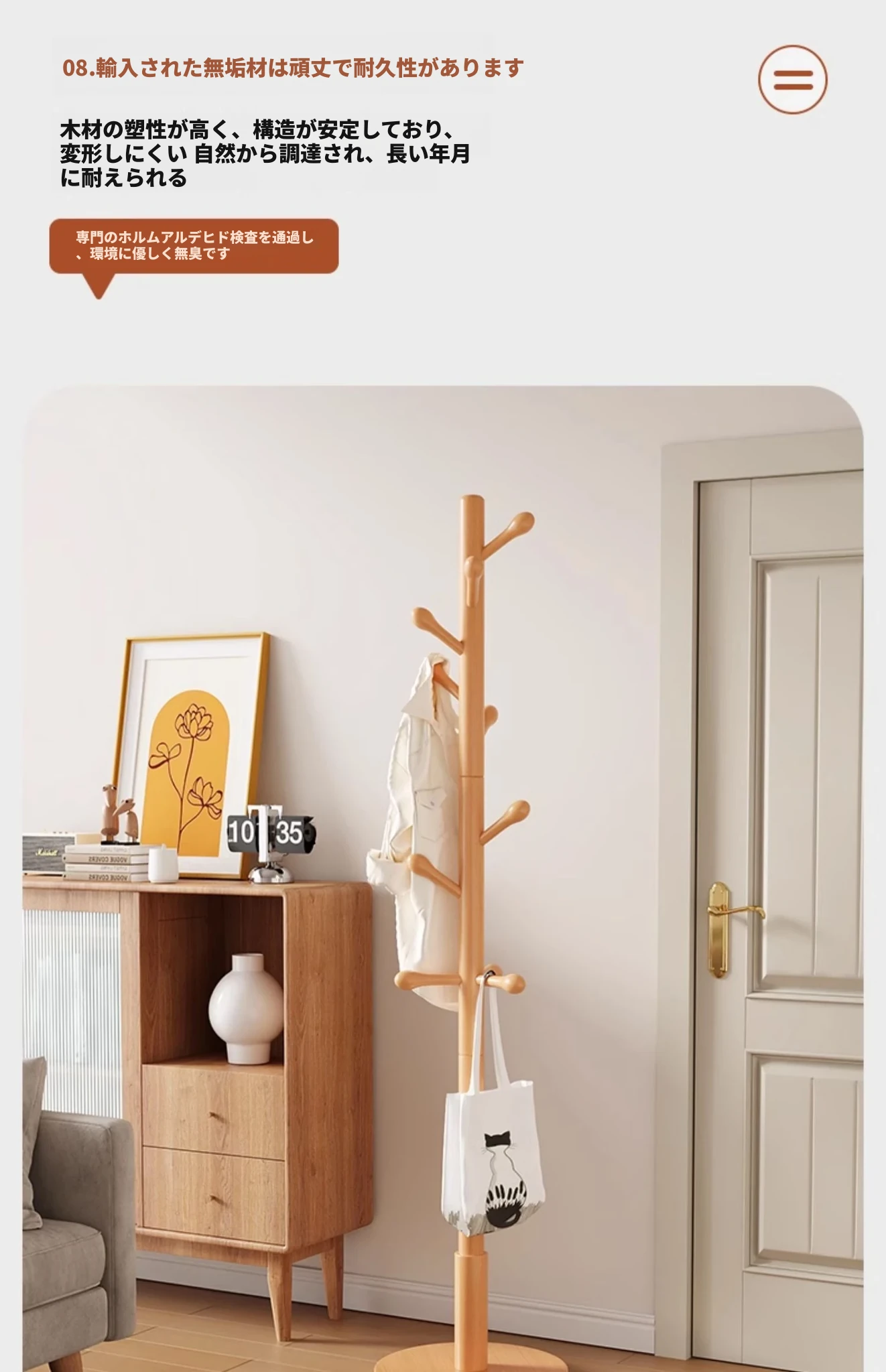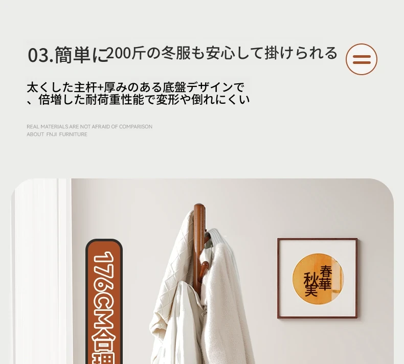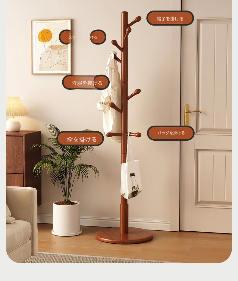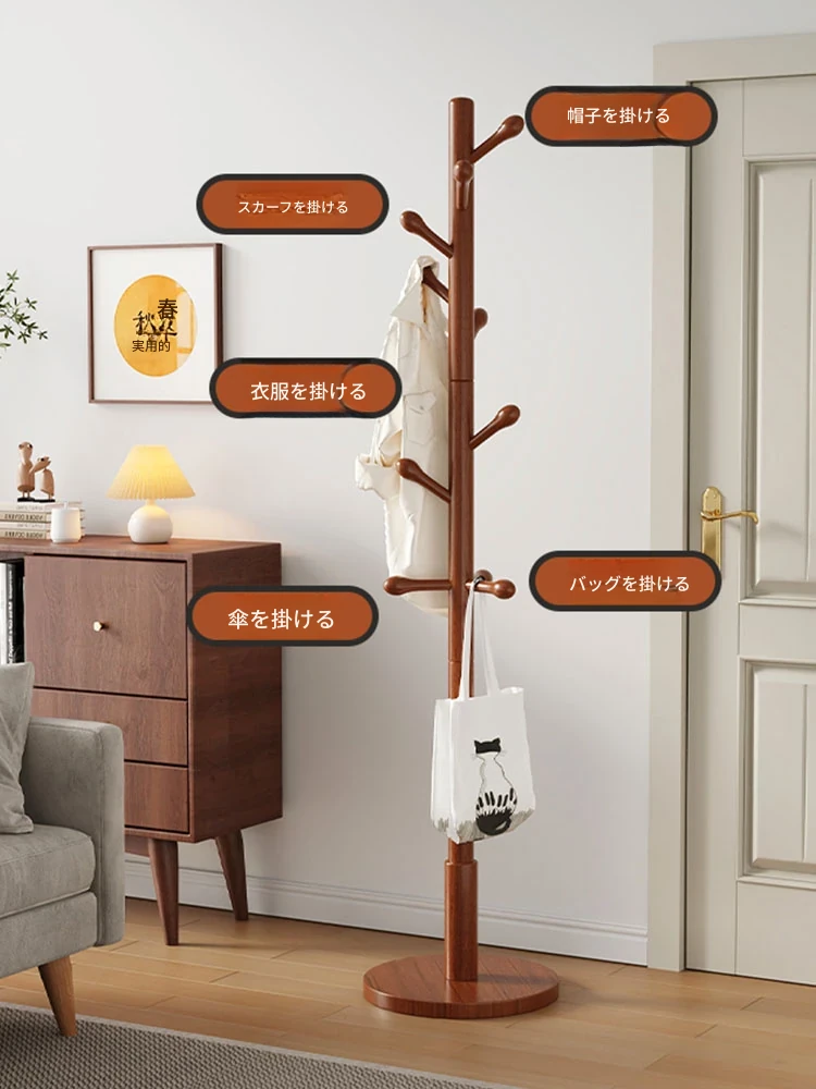 三夢の無垢材ハンガーラック - おしゃれで実用的なフロアコートラック。家庭用のシンプルなスタンド式ブナ材製で、室内で洋服やバッグを美しく収納できます。理想のインテリアを演出!