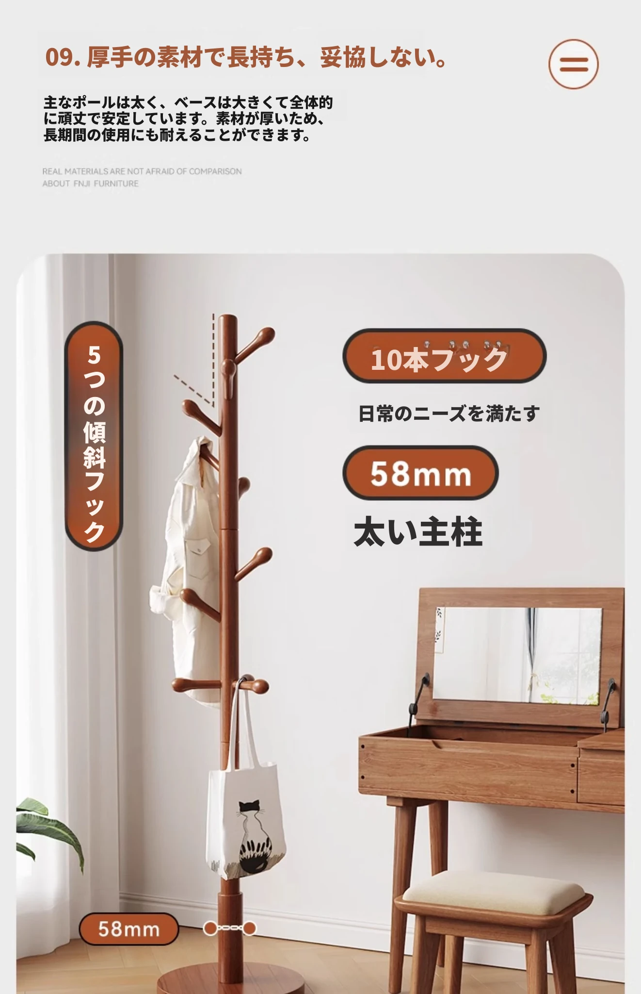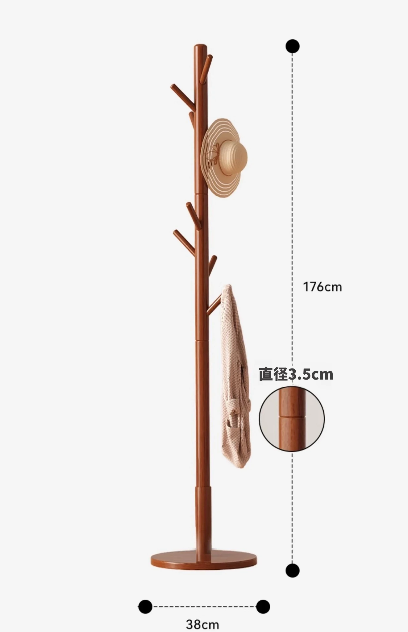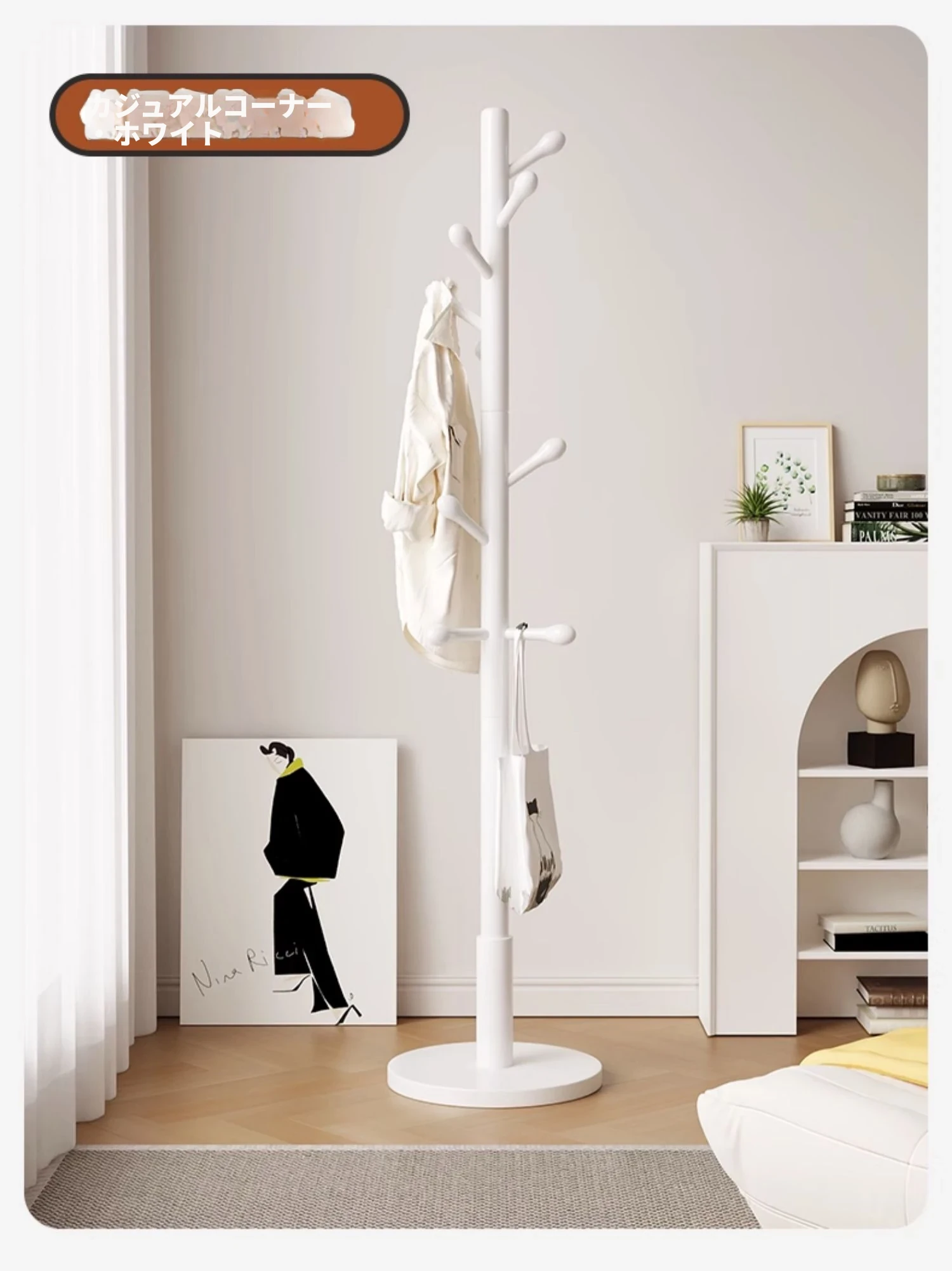三夢の無垢材ハンガーラック - おしゃれで実用的なフロアコートラック。家庭用のシンプルなスタンド式ブナ材製で、室内で洋服やバッグを美しく収納できます。理想のインテリアを演出!
