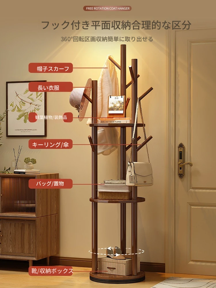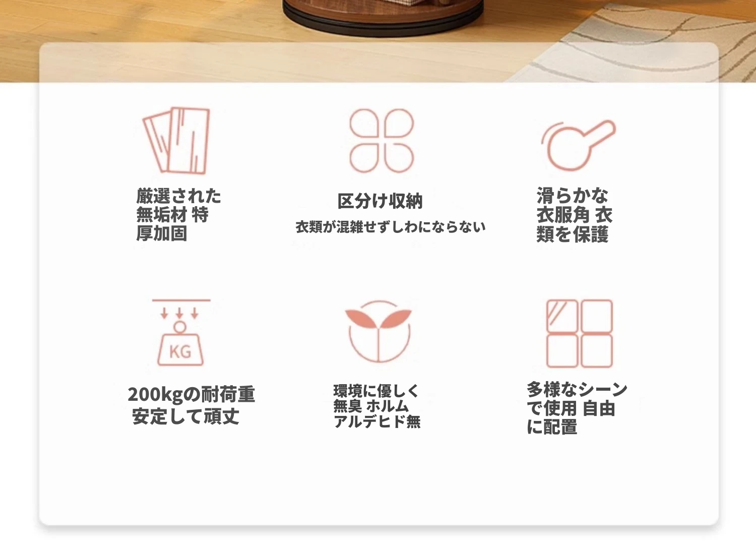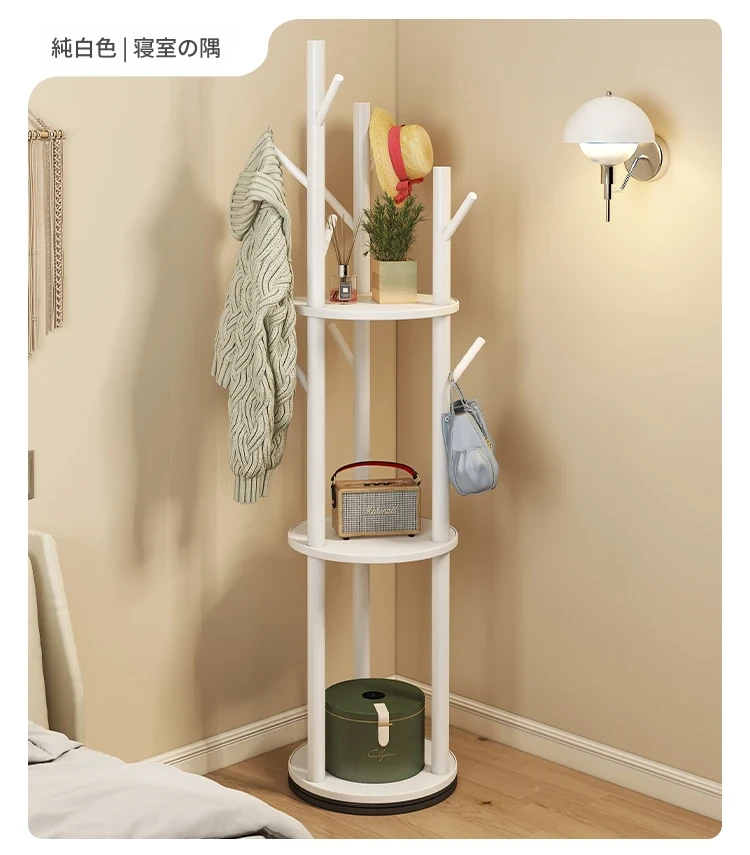三夢の無垢木製コーナー衣装ハンガー - 移動可能なキャビネット、寝室やリビングにぴったりなシンプル収納!おしゃれで便利なハンガーで、空間をスッキリ整頓。毎日のコーディネートが楽しくなる!