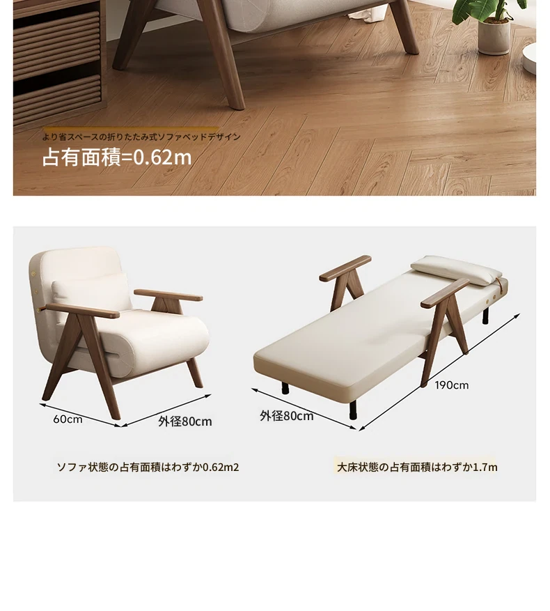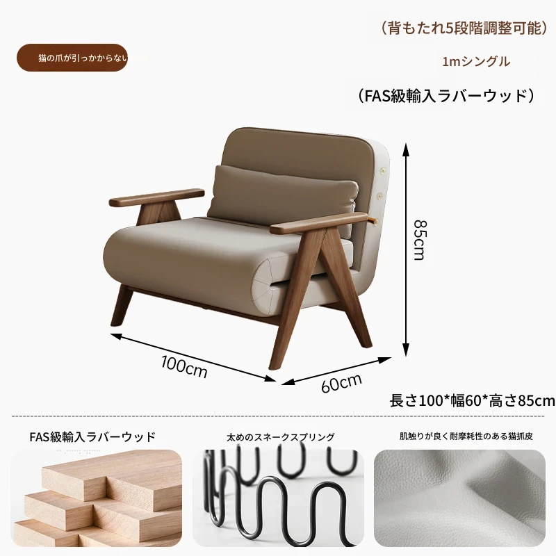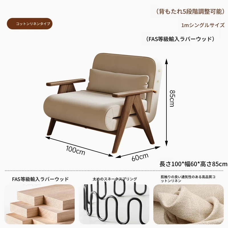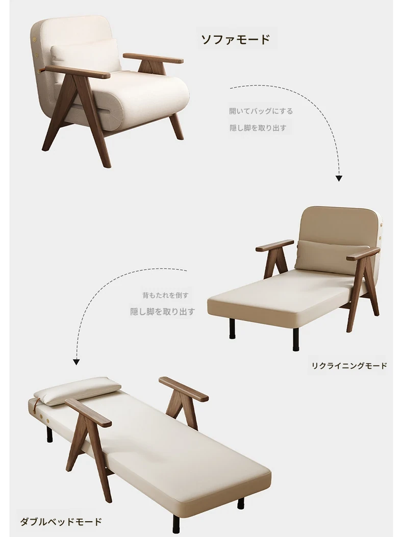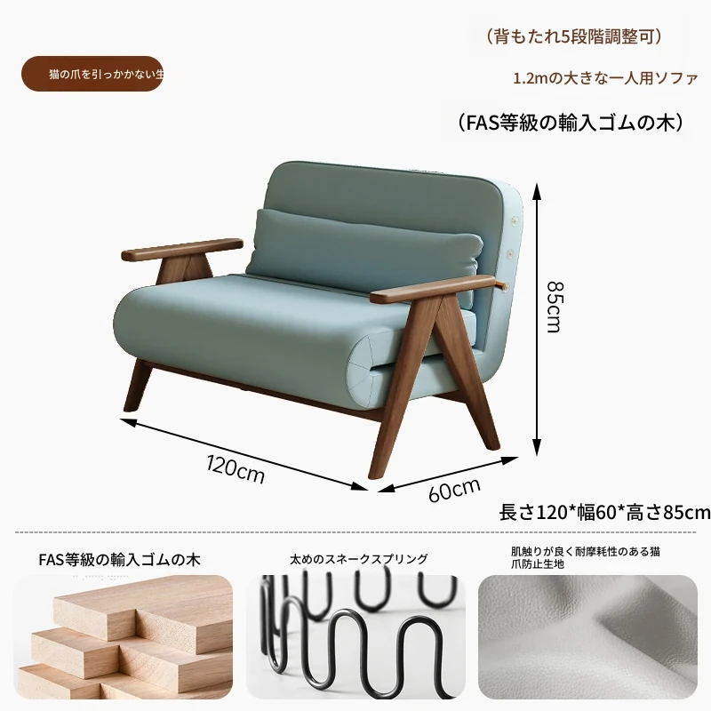 折りたたみソファベッド 一人用 多機能 小型住宅向け 人気のデザイン 家庭用 貴妃風 ラウンジソファ ベッドとしても使える高品質な無垢材製