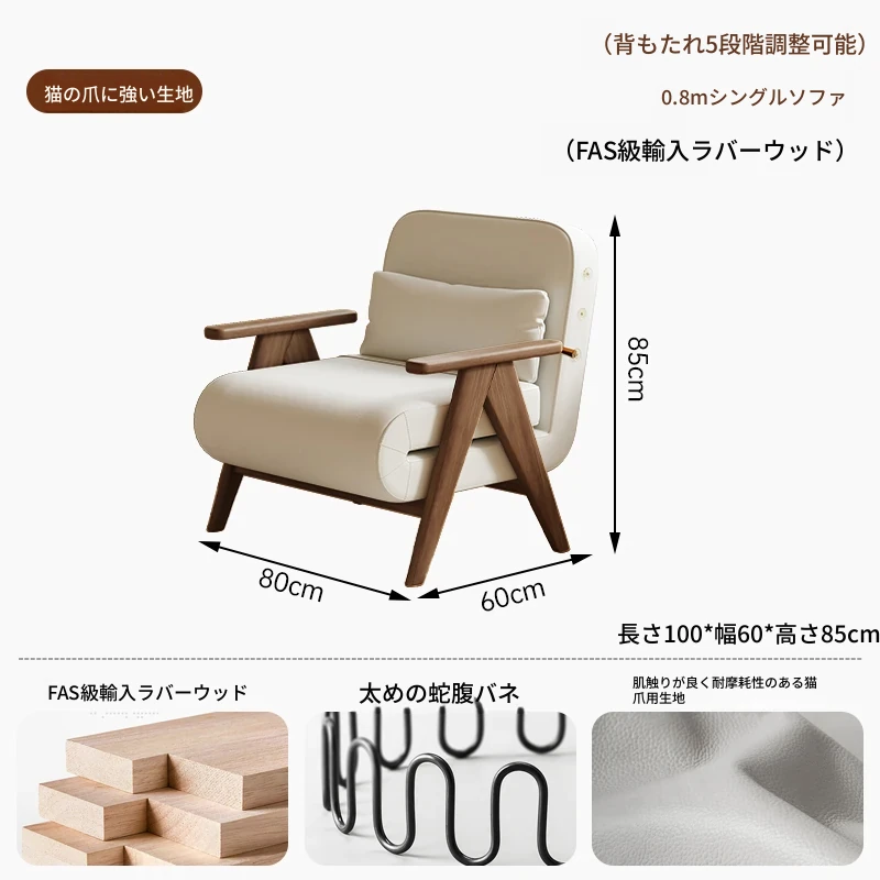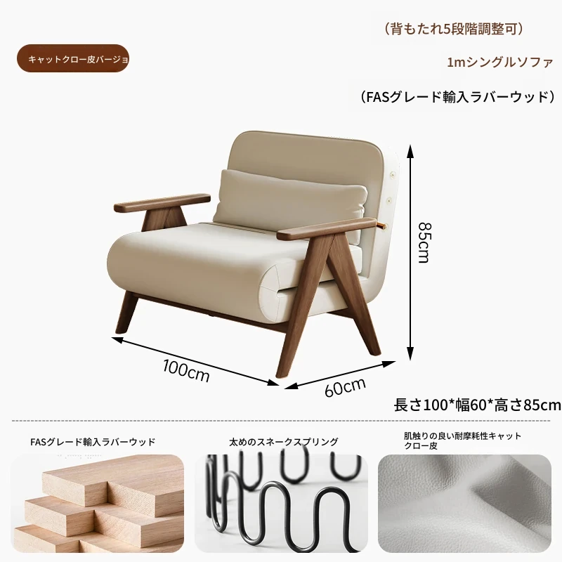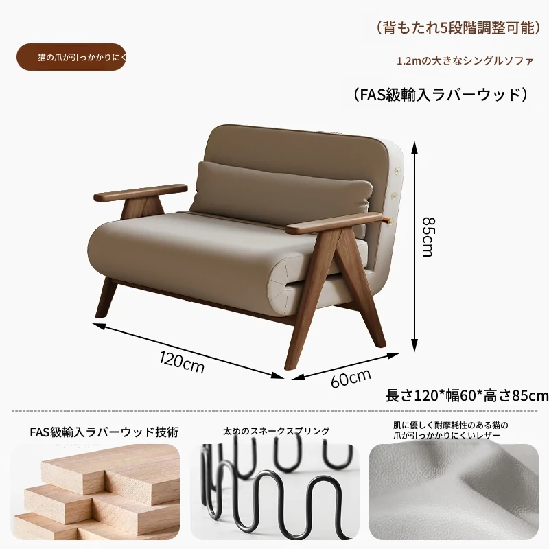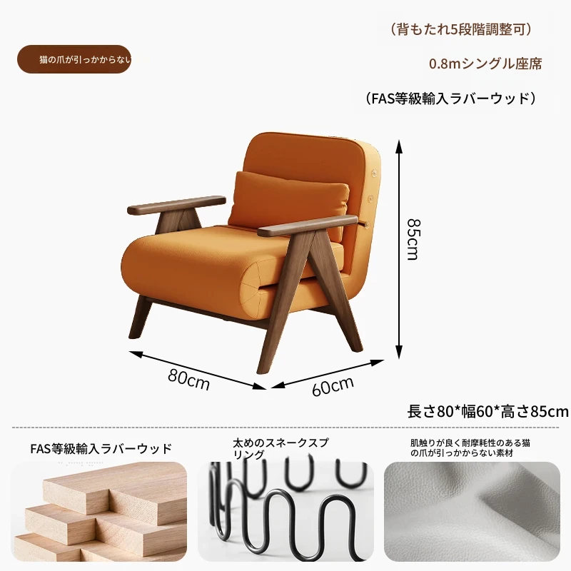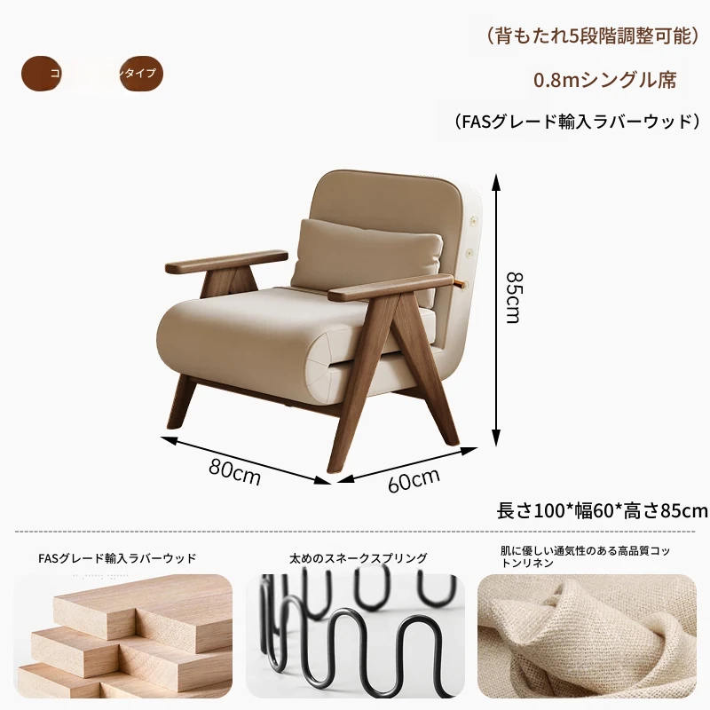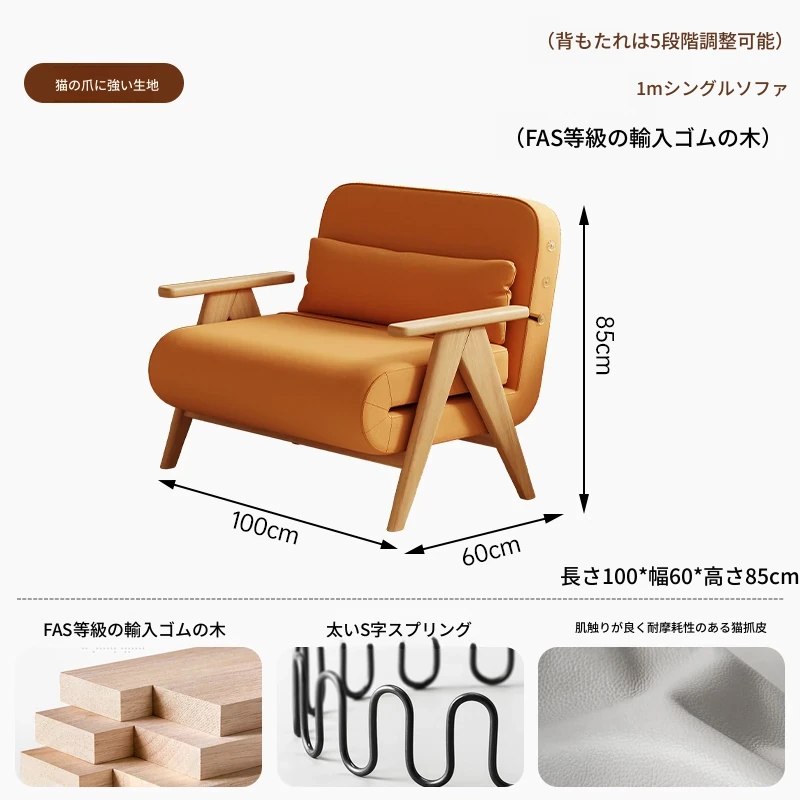 折りたたみソファベッド 一人用 多機能 小型住宅向け 人気のデザイン 家庭用 貴妃風 ラウンジソファ ベッドとしても使える高品質な無垢材製