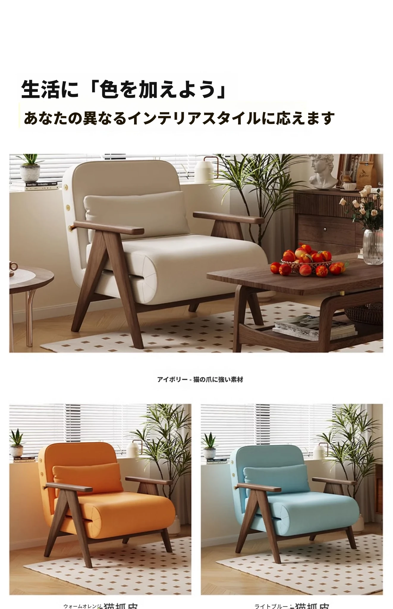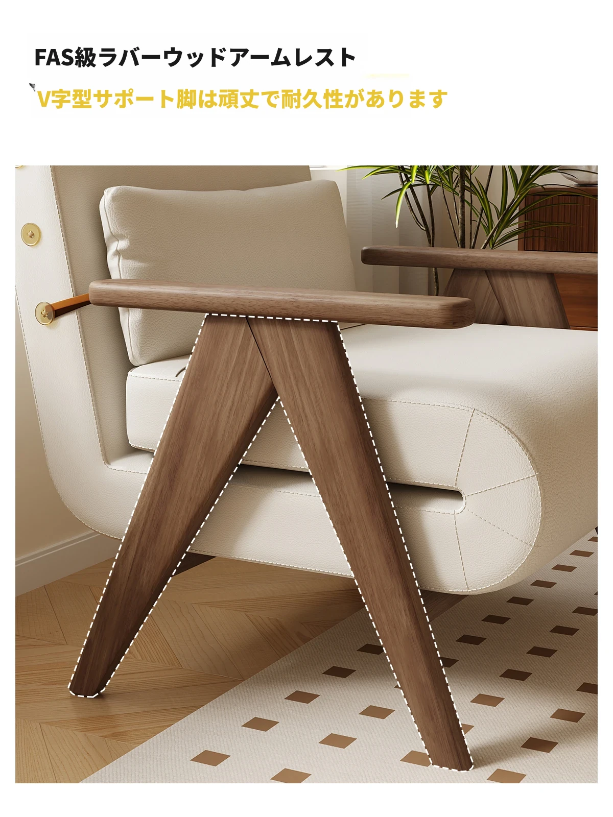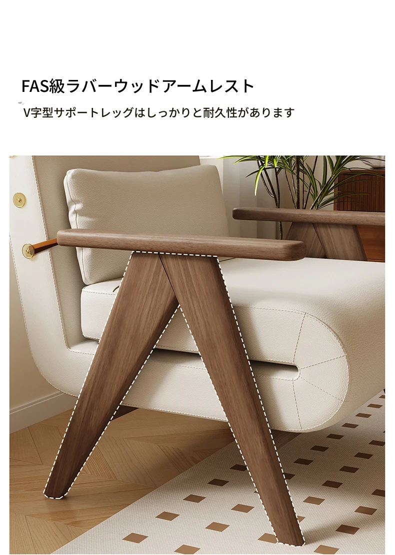 アイボリー80cm-五防キャットグラブレザー-ウォールナット色ソファ脚【お届け】