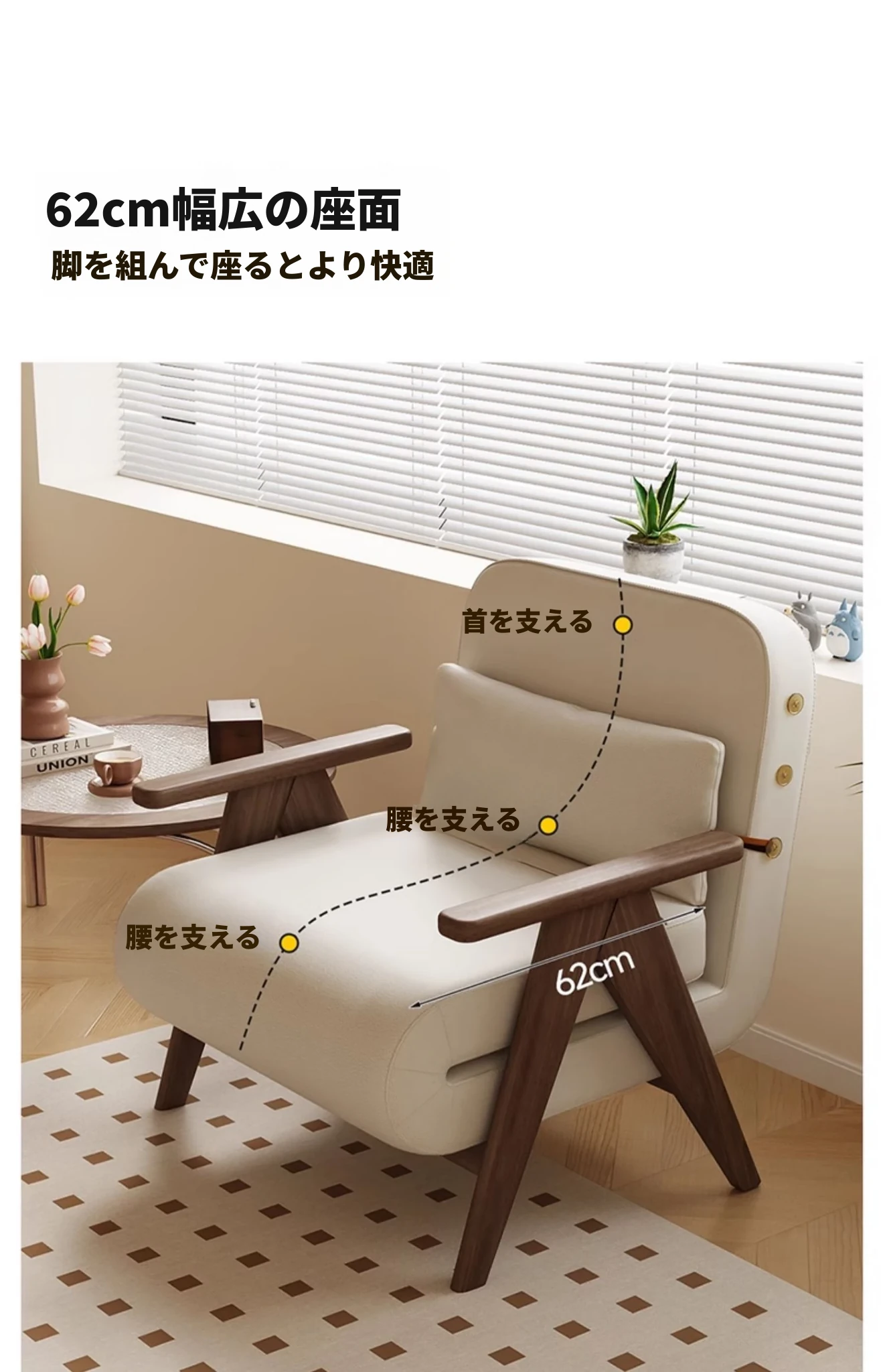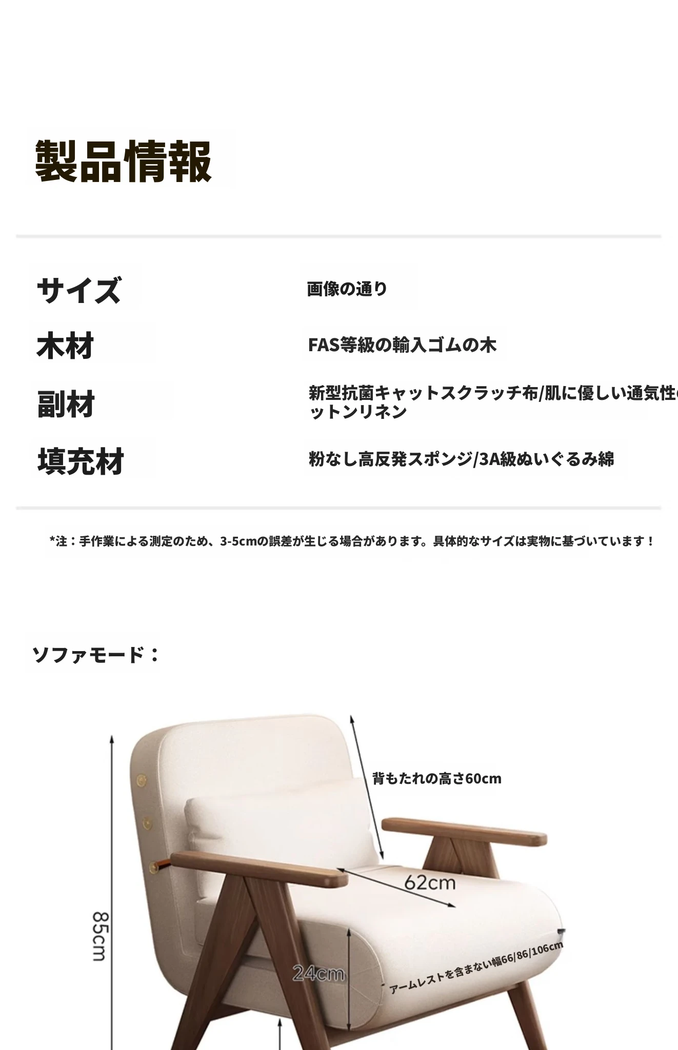 アイボリー80cm-肌触りの良いコットンリネン-ウォールナット色ソファ脚【お届け】