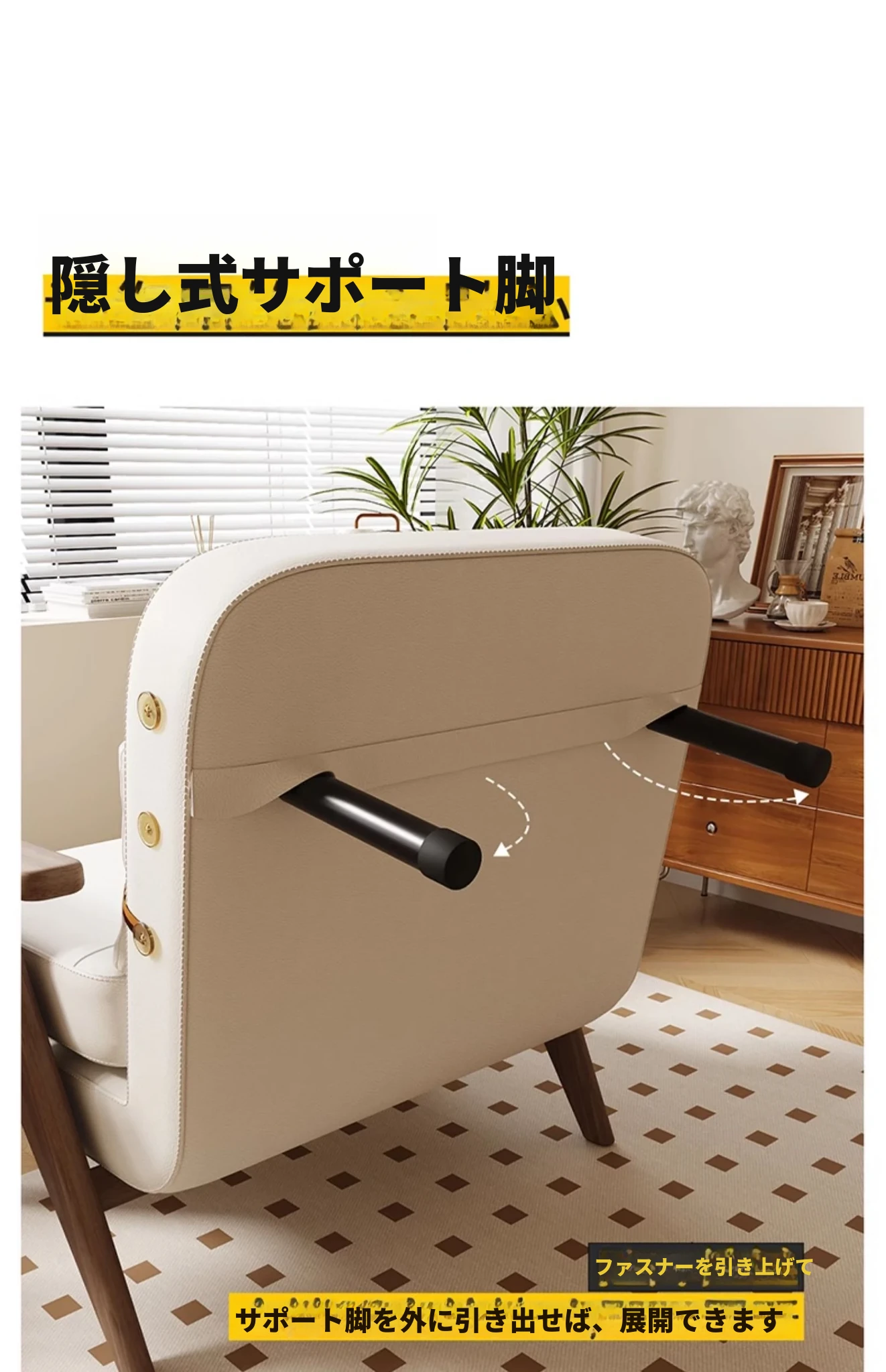 アイボリー120cm-五防キャットグラブレザー-ウォールナット色ソファ脚【お届け】