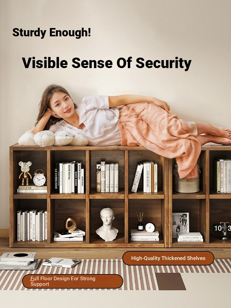 Optimized Translation: "Dreamland Bookshelf - Stylish Solid Wood Floor Storage Rack for Living Room, Wall-Mounted Cubic Display Cabinet, Low Bookcase for Home and Preschool Use"